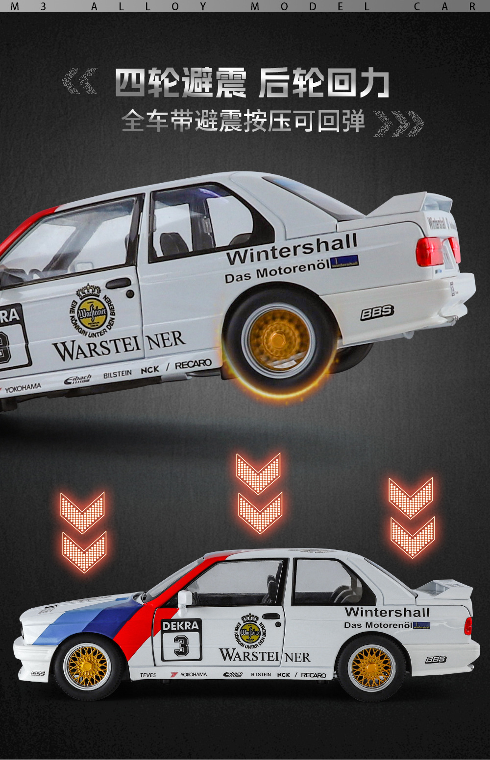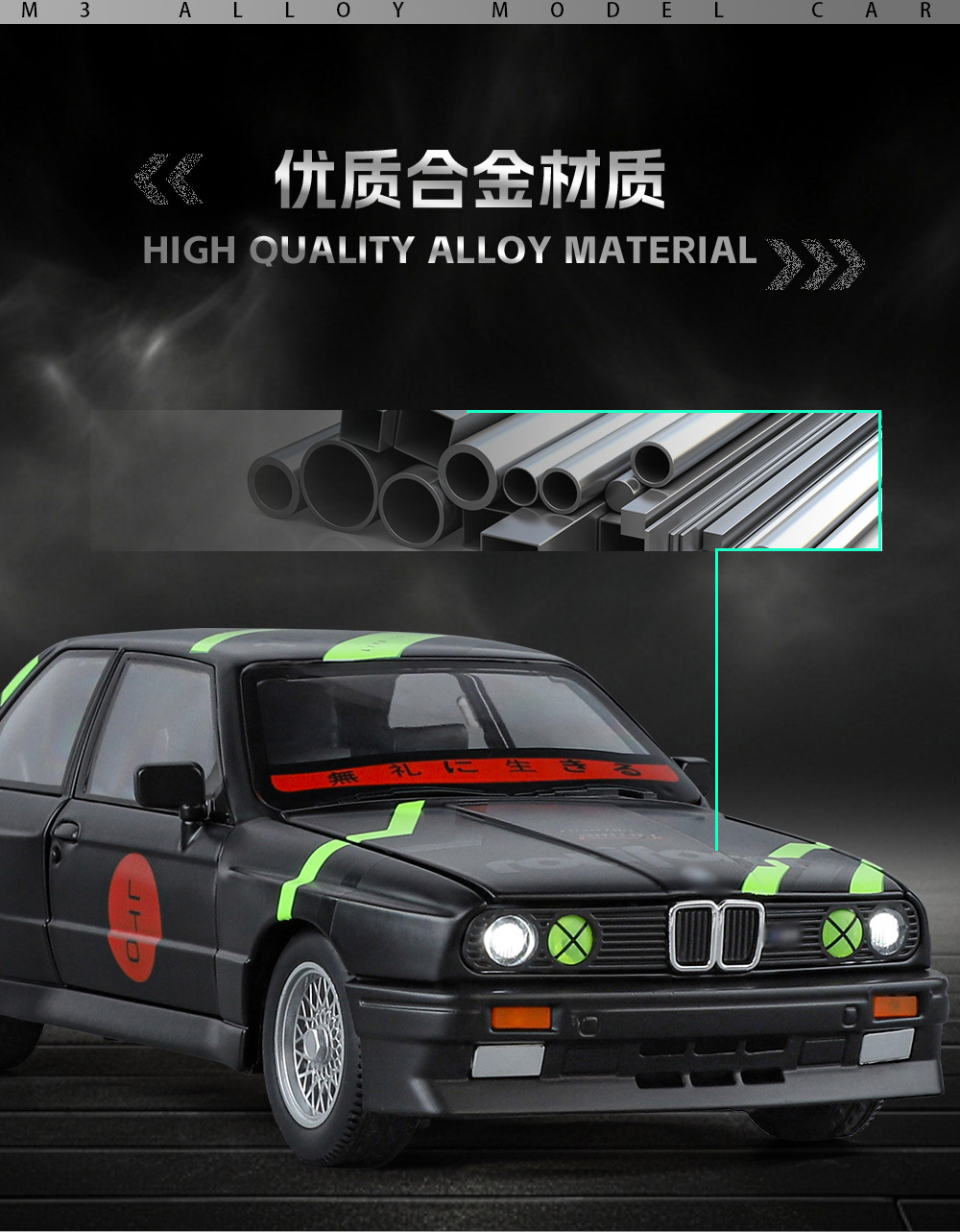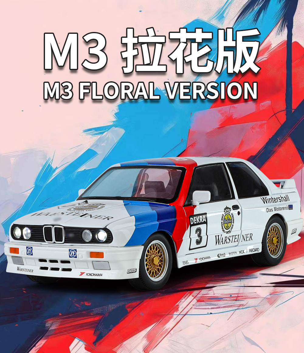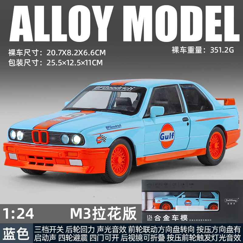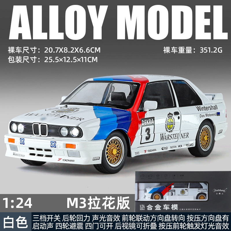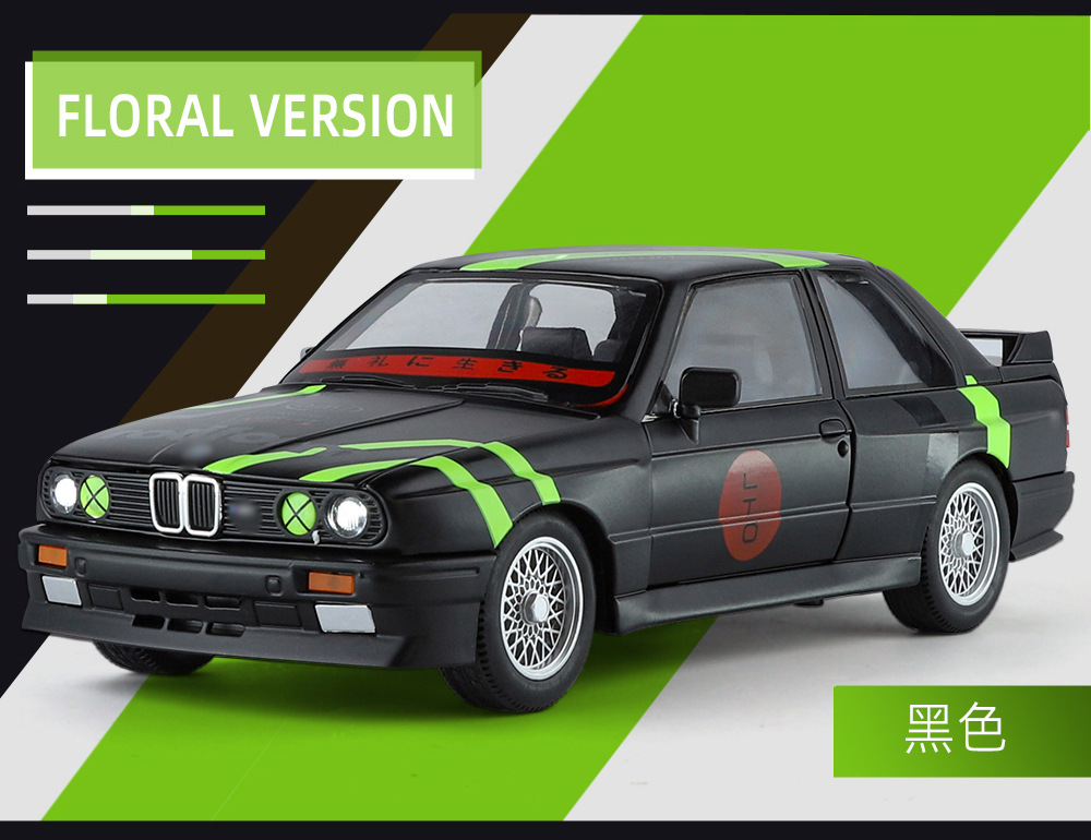 진 리팡 1:24 Baoma M3 E30 꽃 판 어린이 장난감 장식 시뮬레이션 클래식 Acousto-optic 합금 자동차 모델