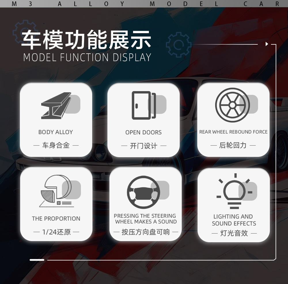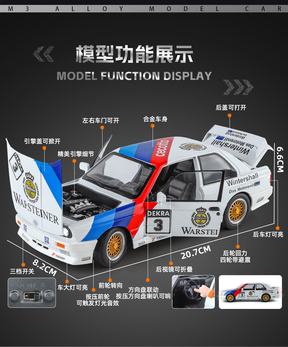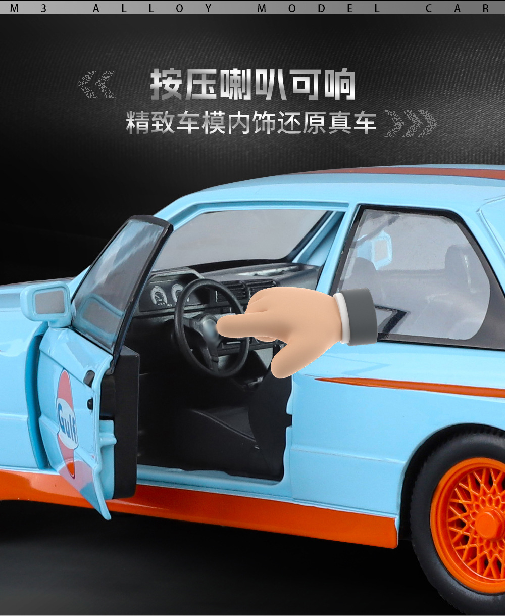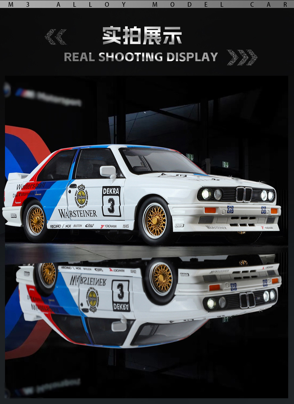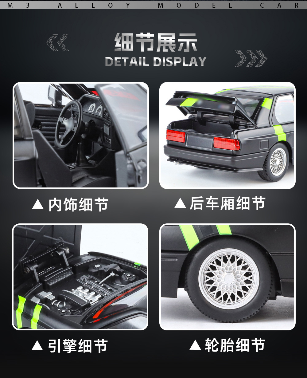 진 리팡 1:24 Baoma M3 E30 꽃 판 어린이 장난감 장식 시뮬레이션 클래식 Acousto-optic 합금 자동차 모델