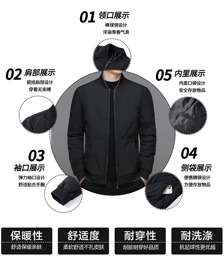 다운 재킷 남자 겨울 패션 캐주얼 야구 재킷 칼라 코트 중년 슬림 핏 솔리드 컬러 비즈니스 국경 대외 무역