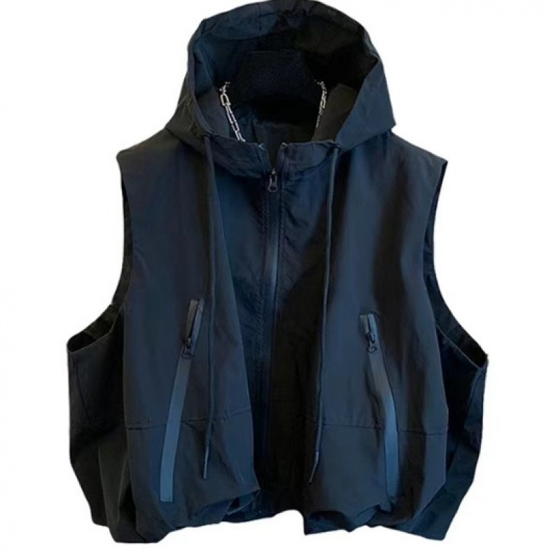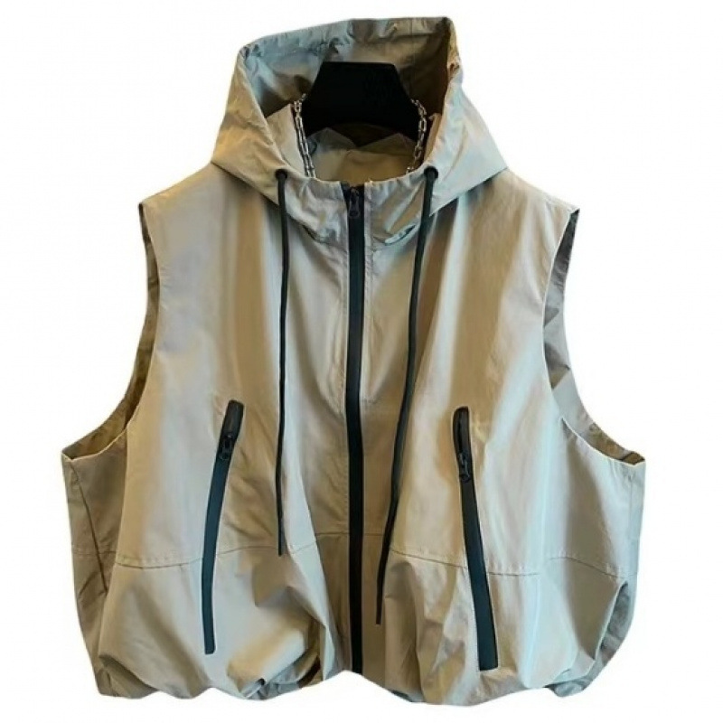 [플러스 사이즈] 가을 하이 엔드 감각 느슨한 스포츠 스타일 폭행 의류 후드 조끼 여성 캐주얼 코트 탑스토어 가기