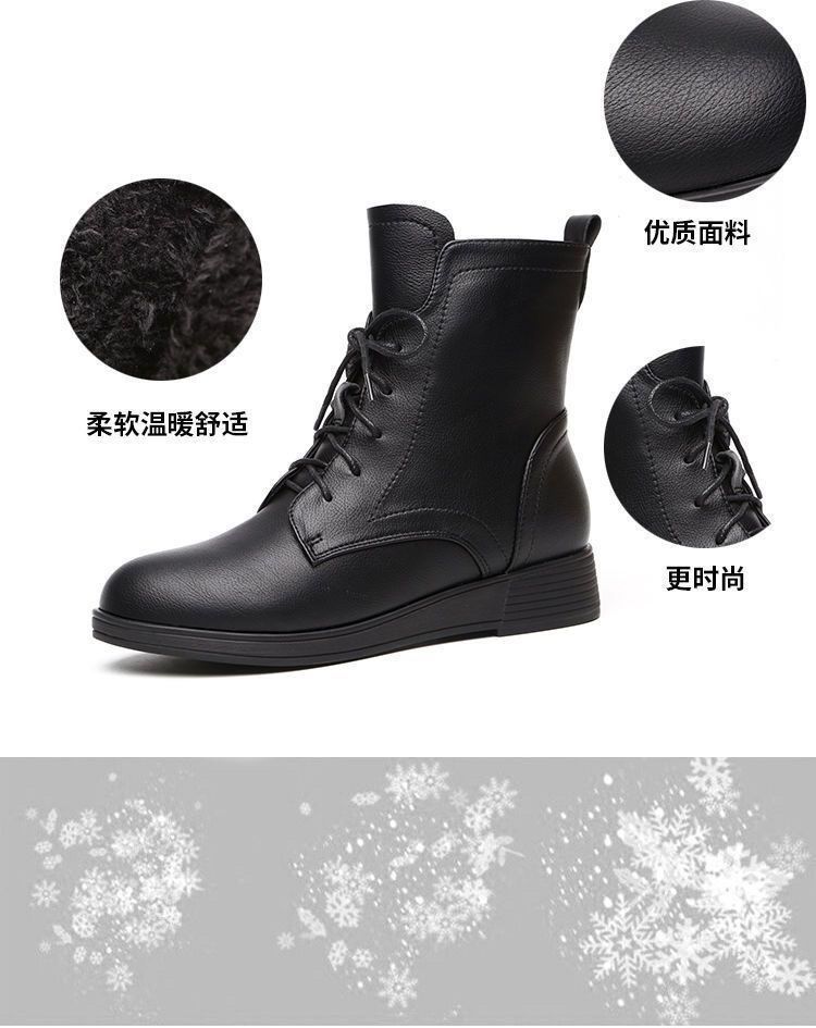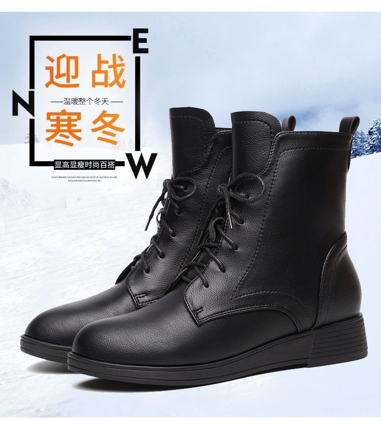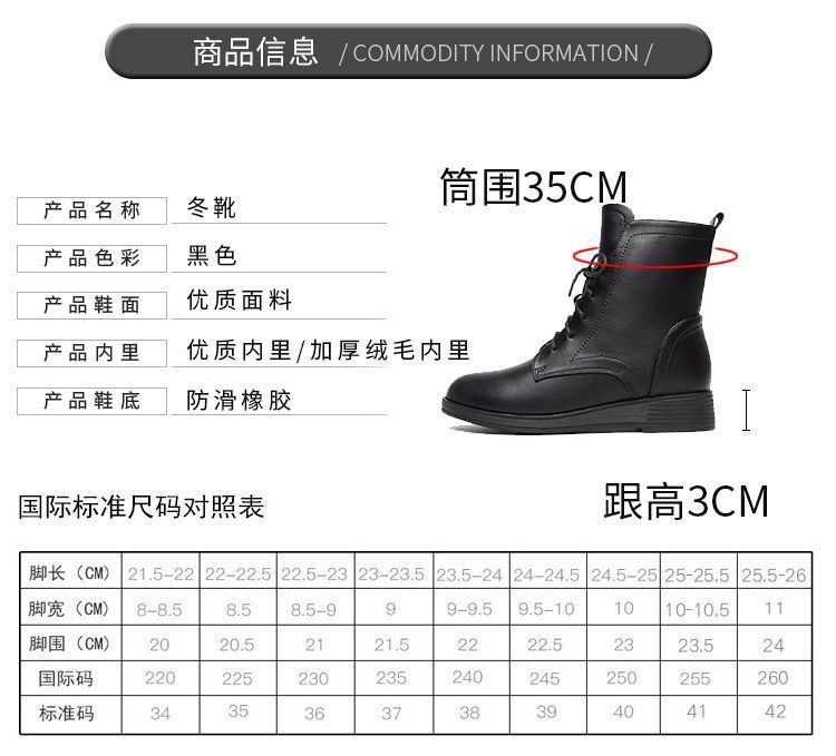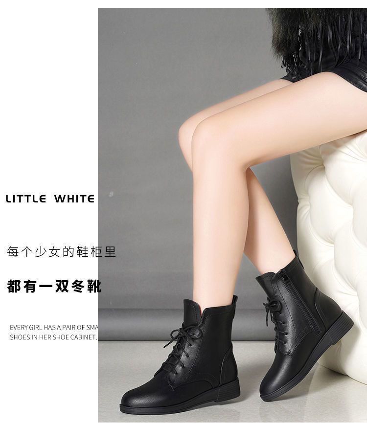 여성용 부드러운 가죽 짧은 부츠 플랫 2024 가을 겨울 신상 면화 플러스 벨벳 영국식 미드 힐 레이스 업 마틴 부츠스토어 가기