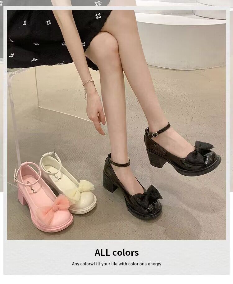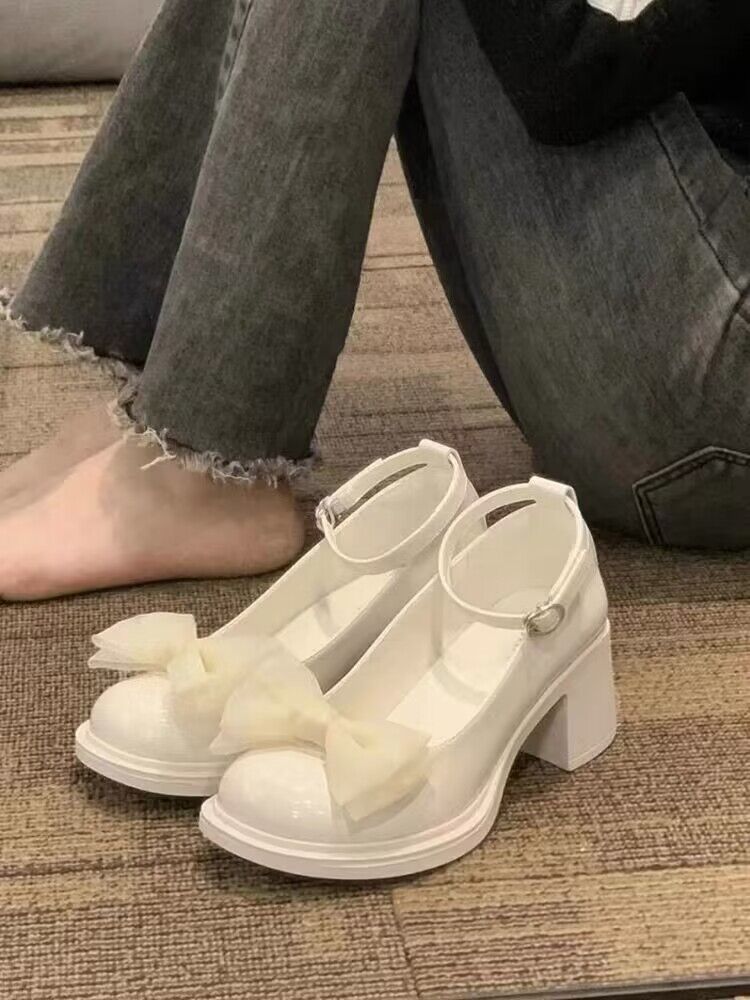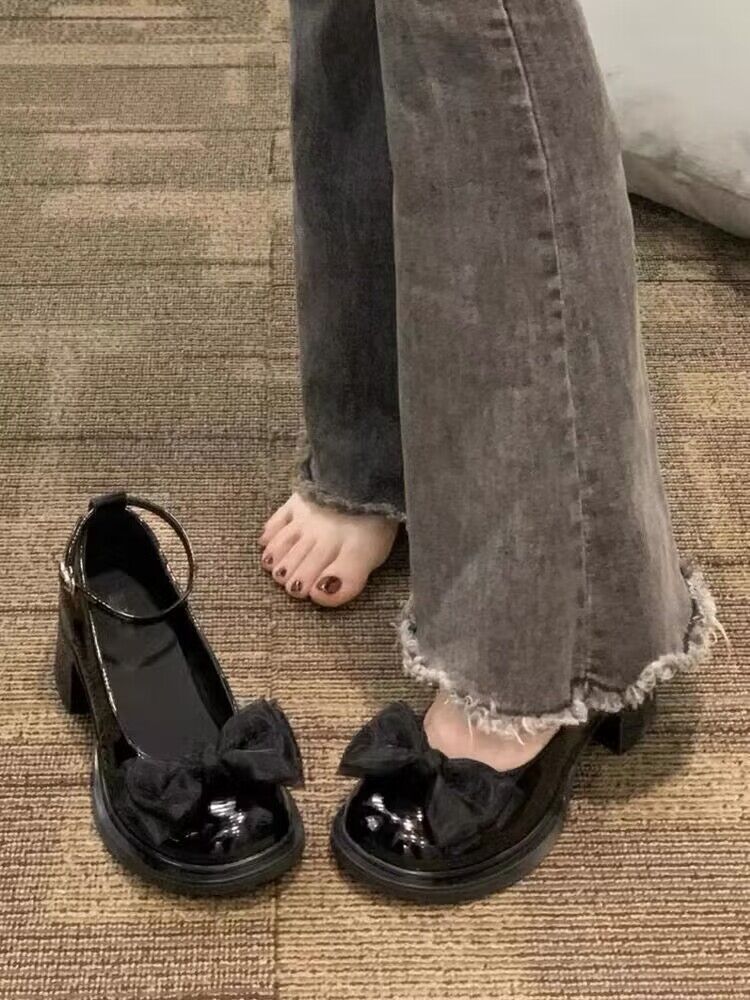 메리 제인 신발 여성 2023 년 봄 새 도착 활 레트로 라운드 발가락 귀여운 하이힐 스키니 가죽 신발 싱글 Weidong스토어 가기