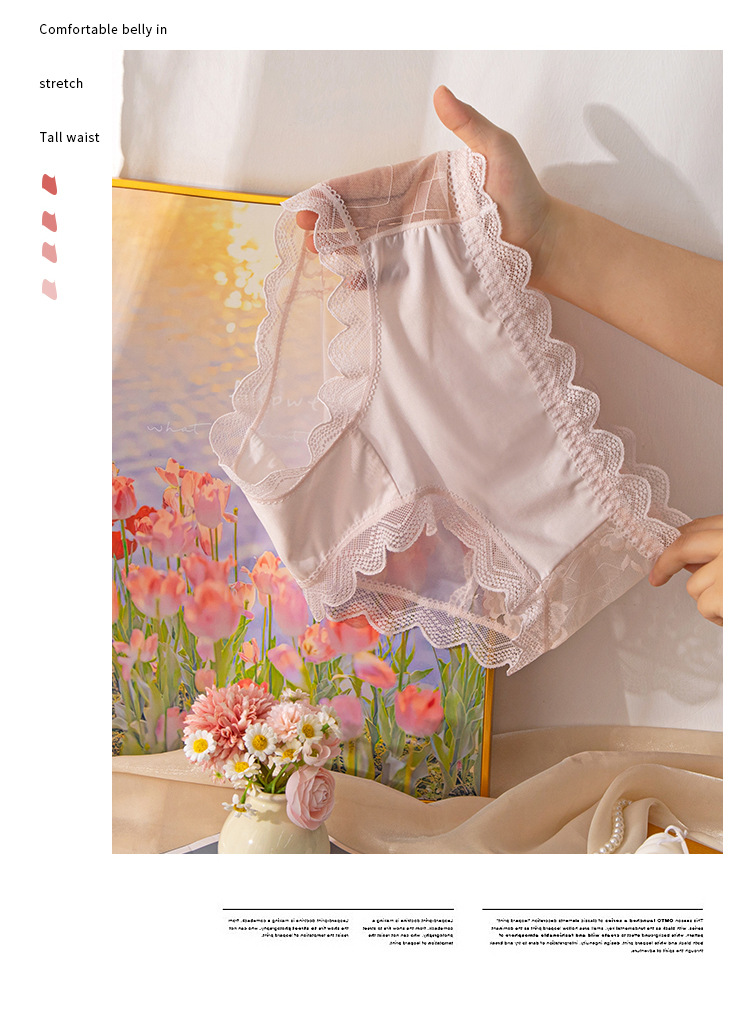 아이스 실크 속옷 여성의 뚱뚱한 크기 200kg 순수한 섹시한 레이스 중간 허리 메쉬 통기성 엉덩이 원활한 빠른 건조스토어 가기