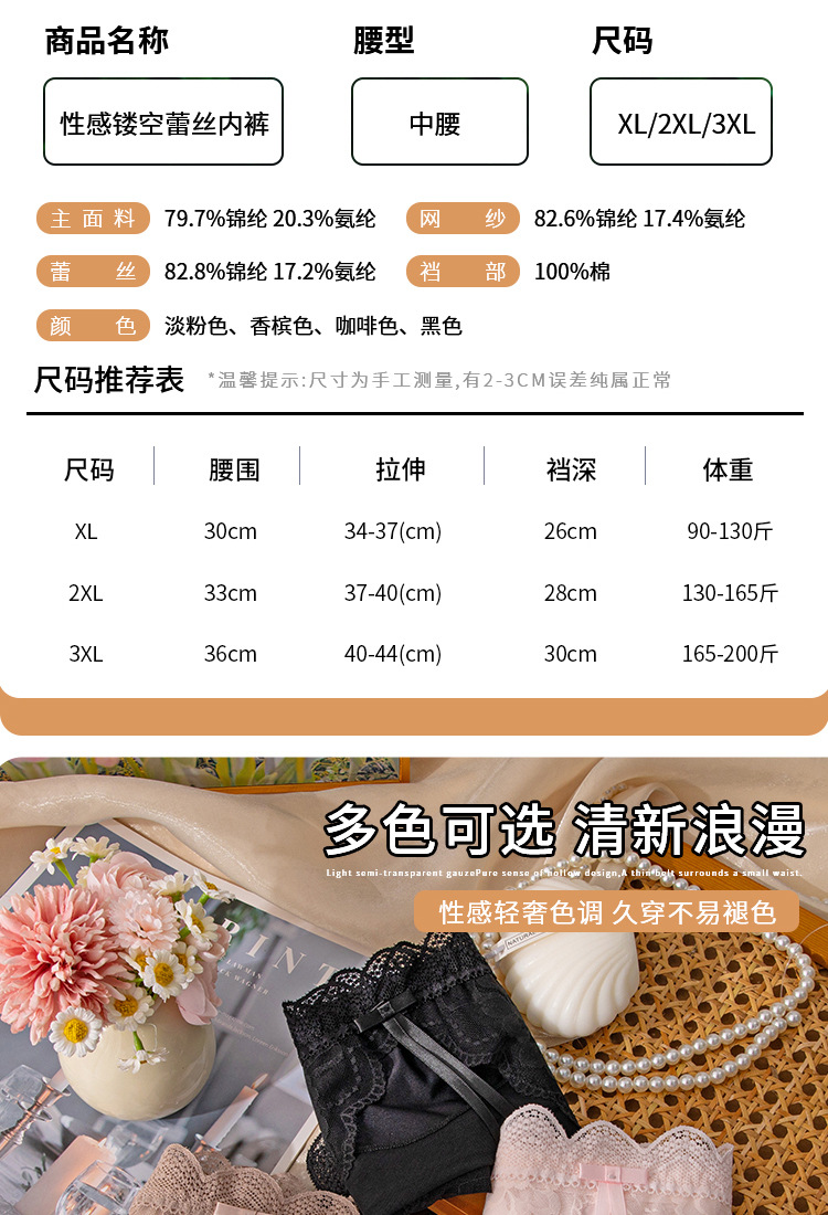 아이스 실크 속옷 여성의 뚱뚱한 크기 200kg 순수한 섹시한 레이스 중간 허리 메쉬 통기성 엉덩이 원활한 빠른 건조