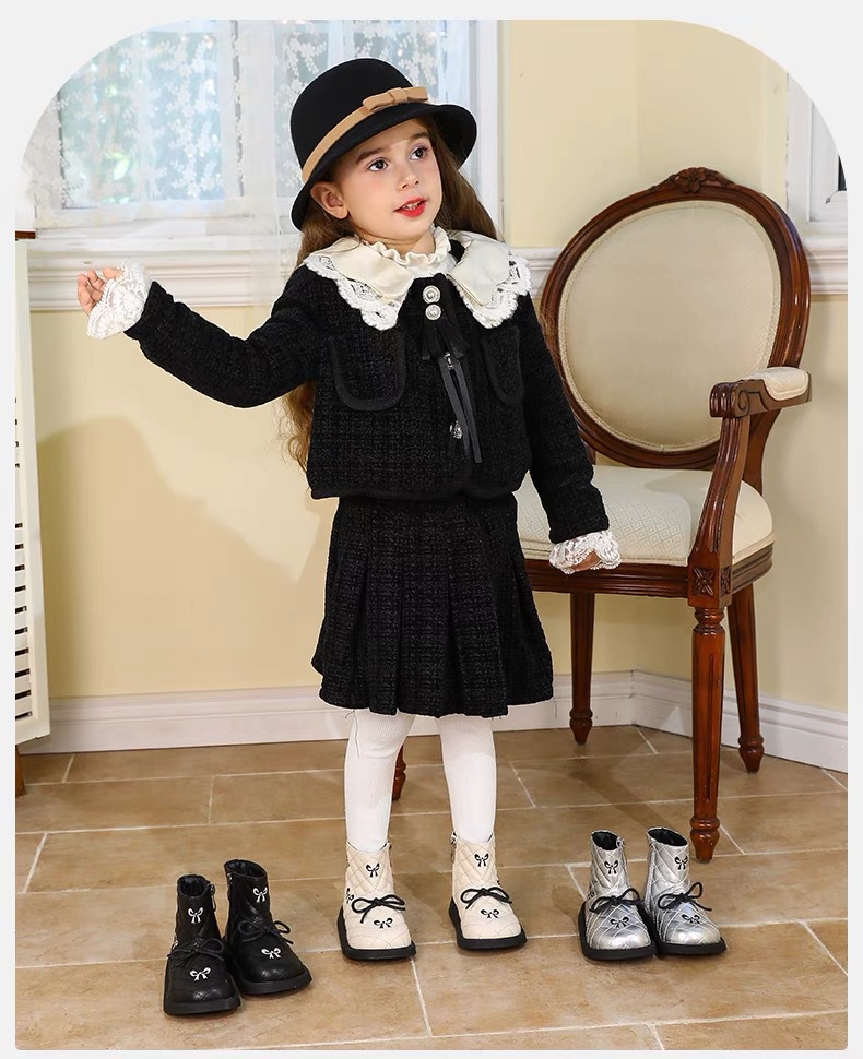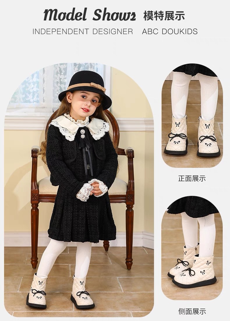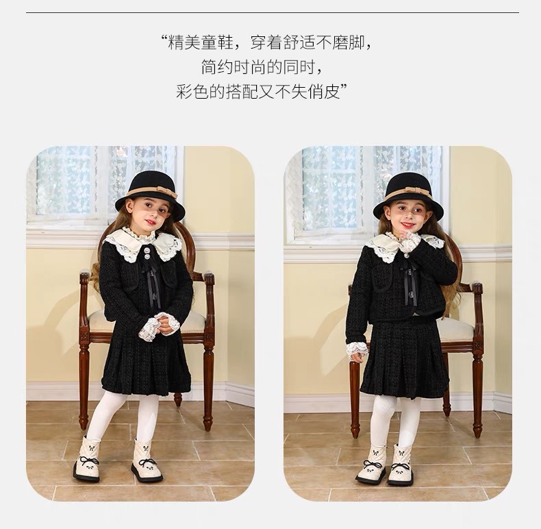 캐니즈 걸스 마틴 부츠 2024 겨울 새 키즈 패션 활 공주 부츠 아기 싱글 부츠
