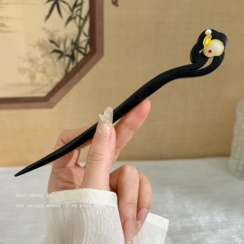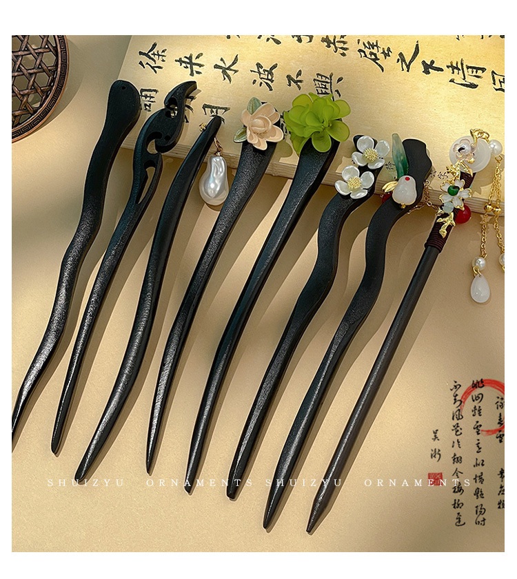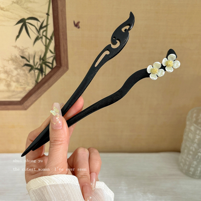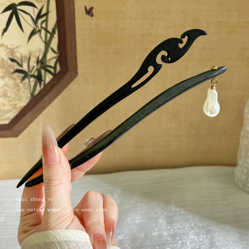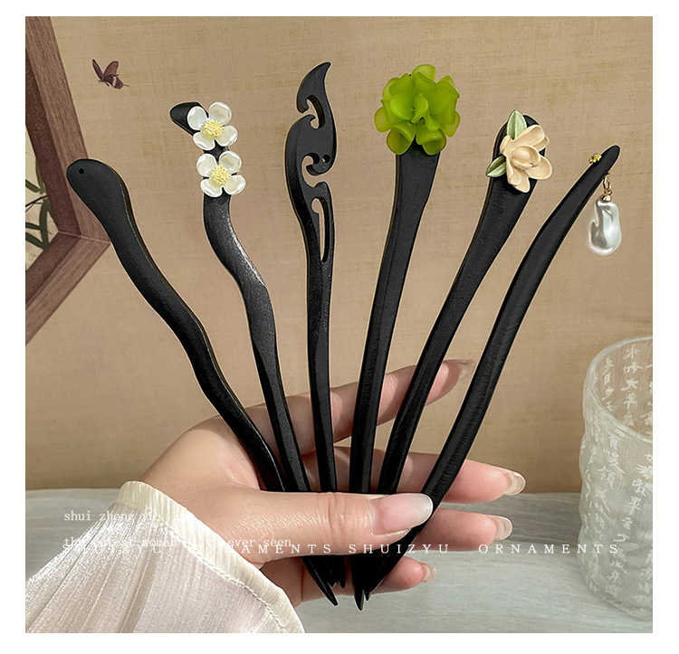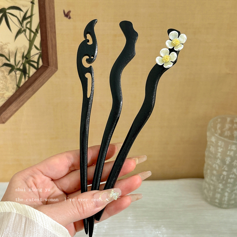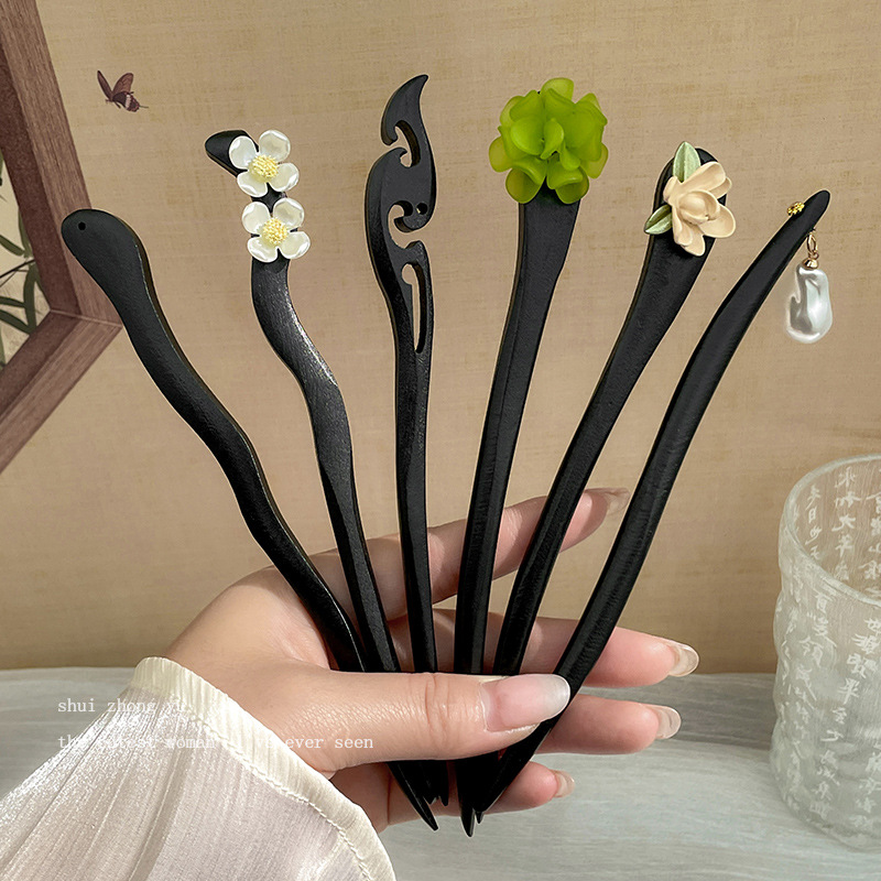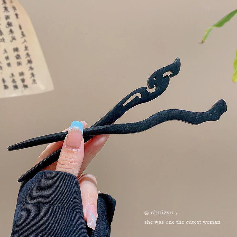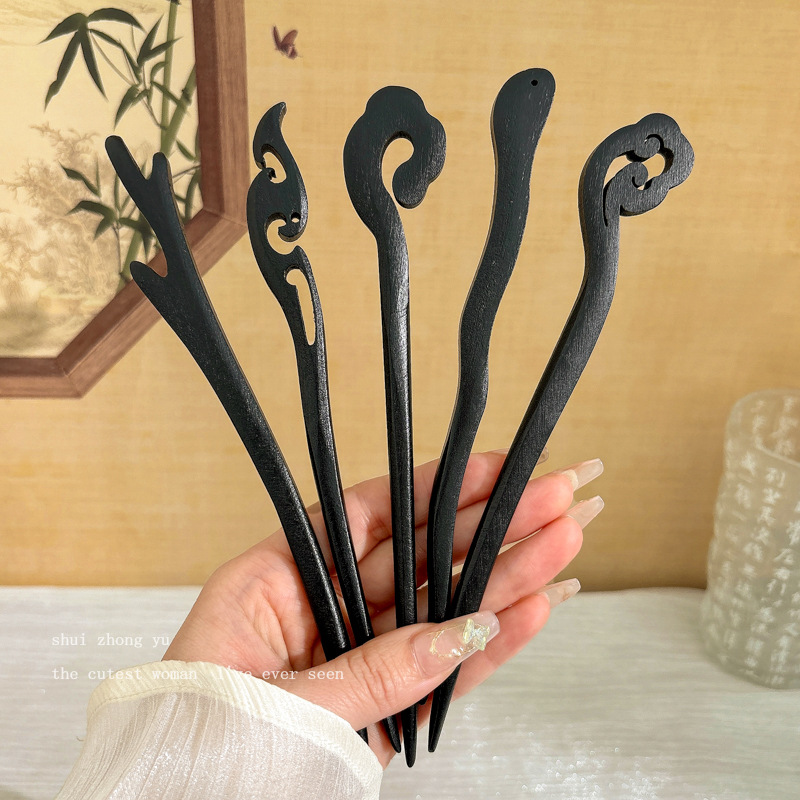 새로운 중국 스타일 하이 엔드 느낌 블랙 샌달 우드 내셔널 스타일 헤어 핀 골동품 나무 머리핀 말 얼굴 스커트 머리핀스토어 가기