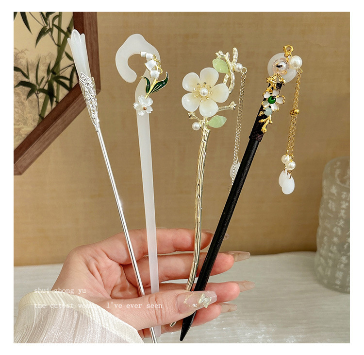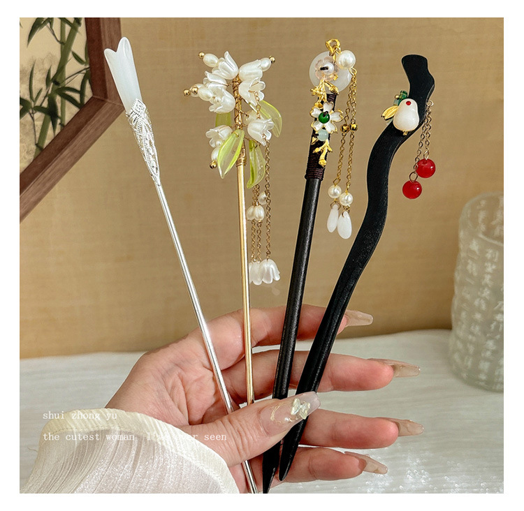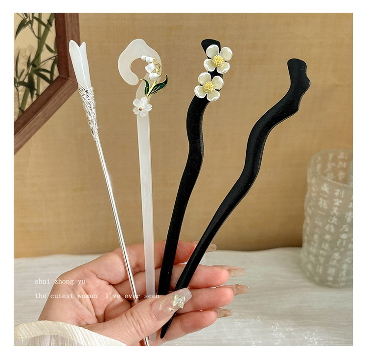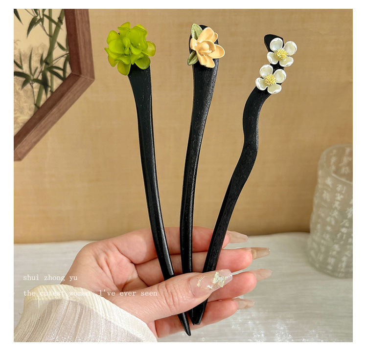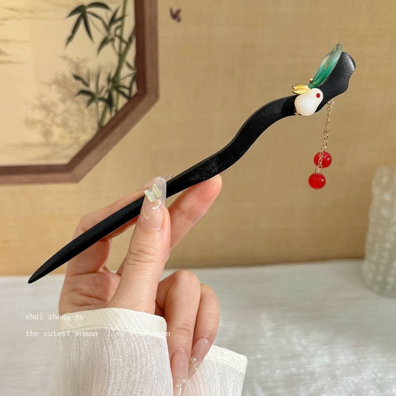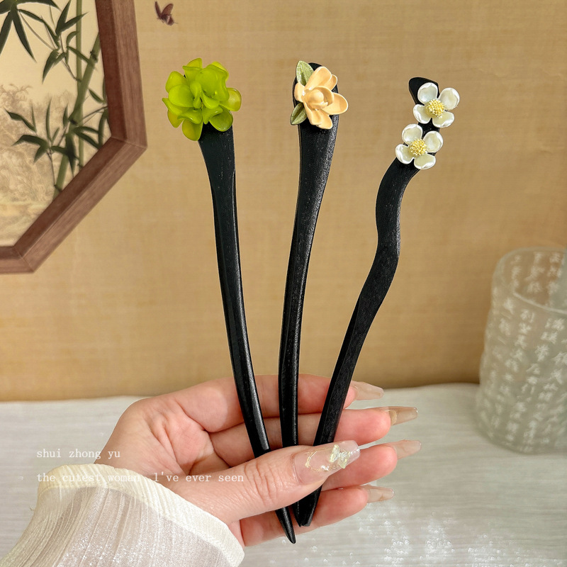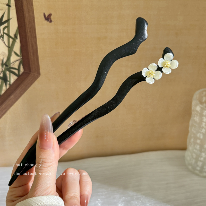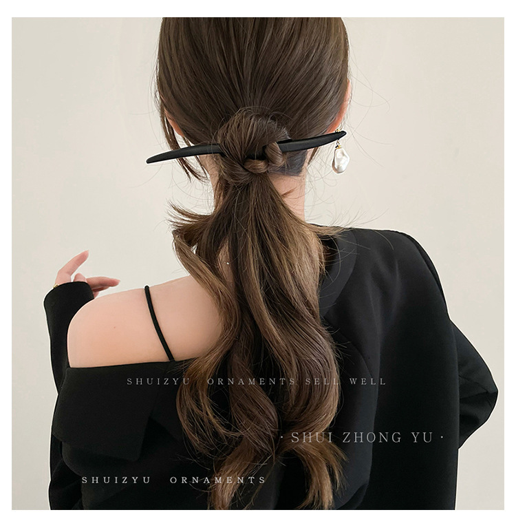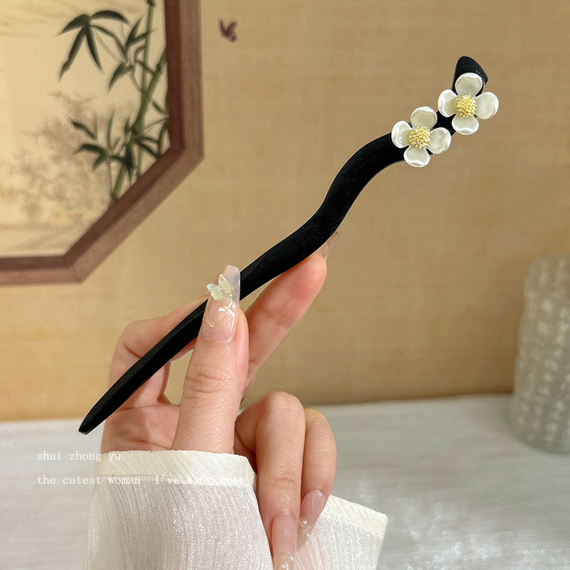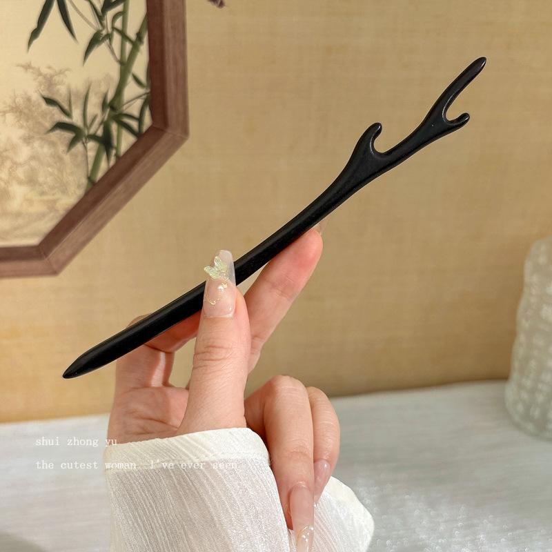 새로운 중국 스타일 하이 엔드 느낌 블랙 샌달 우드 내셔널 스타일 헤어 핀 골동품 나무 머리핀 말 얼굴 스커트 머리핀스토어 가기