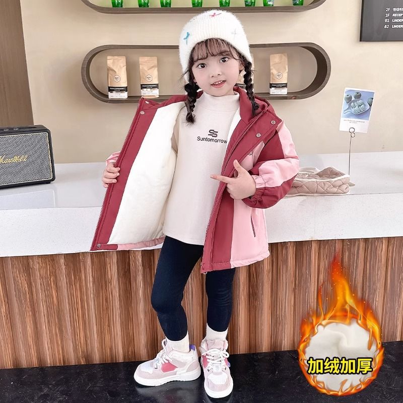 소녀의 충전 옷 코트 면화 2024 새로운 스타일 서양식 어린이 겨울 옷 면 겨울 소녀의 패션스토어 가기