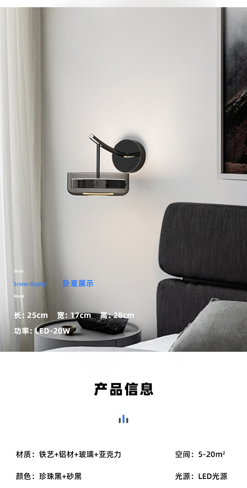 가벼운 고급 침실 침대 옆 벽 램프 2024 새로운 디자이너 복도 거실 배경 벽 유리 분위기 램프스토어 가기