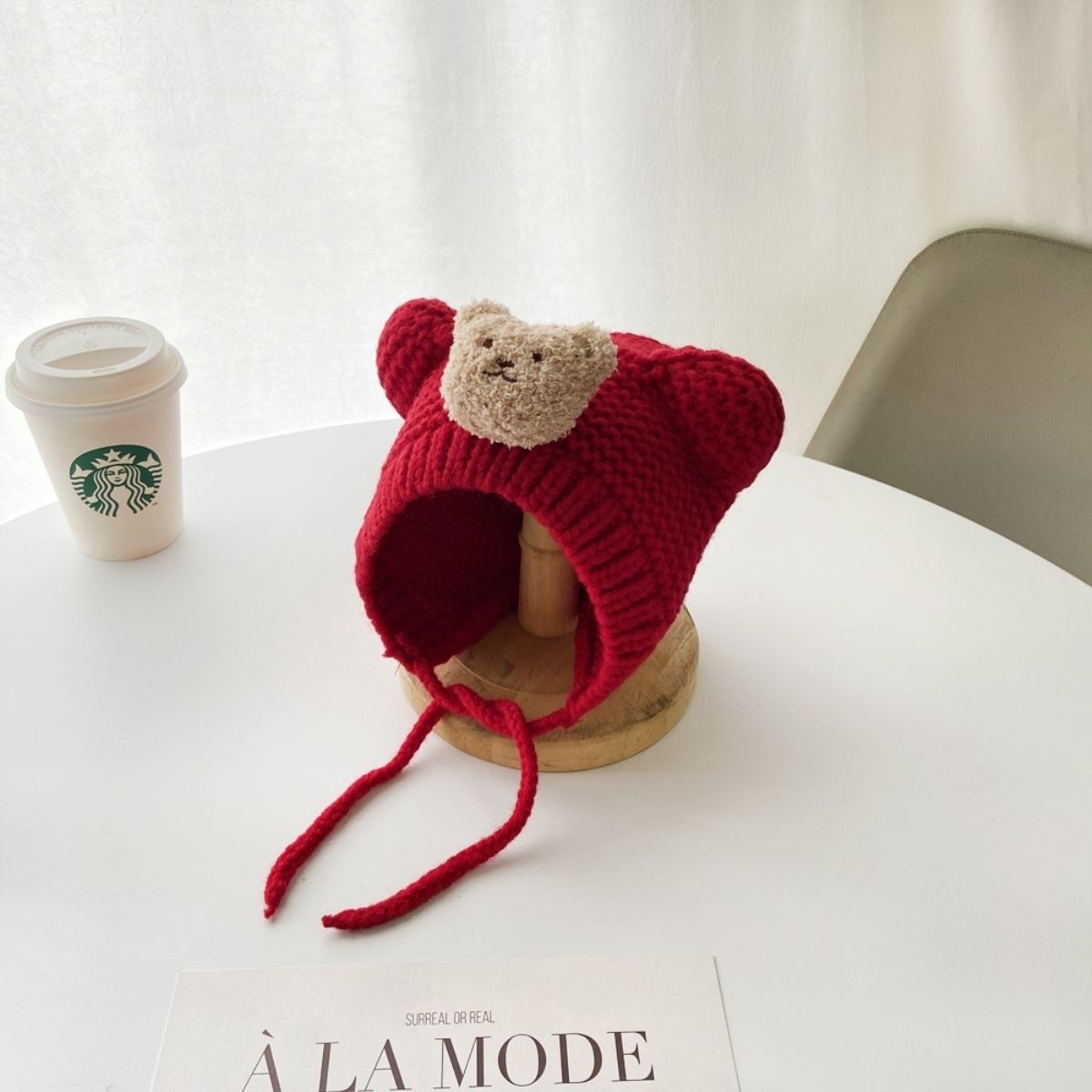 겨울 아기 귀 보호 양모 모자 한국 스타일 가을 겨울 따뜻한 아기 풀오버 모자 소년 소녀를위한 귀여운 작은 꽃 모자