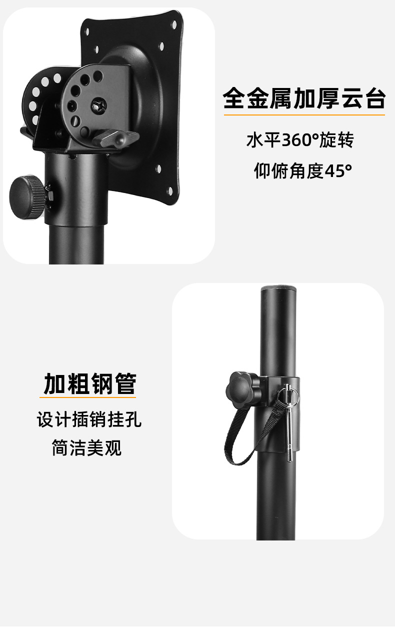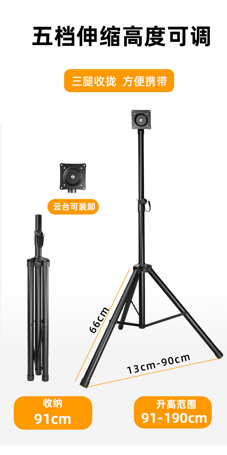 삼각대 머리 장착 액세서리가있는 디스플레이 브래킷 트레이 컴퓨터 터치 스크린 수평 및 수직 회전 헤드 모니터