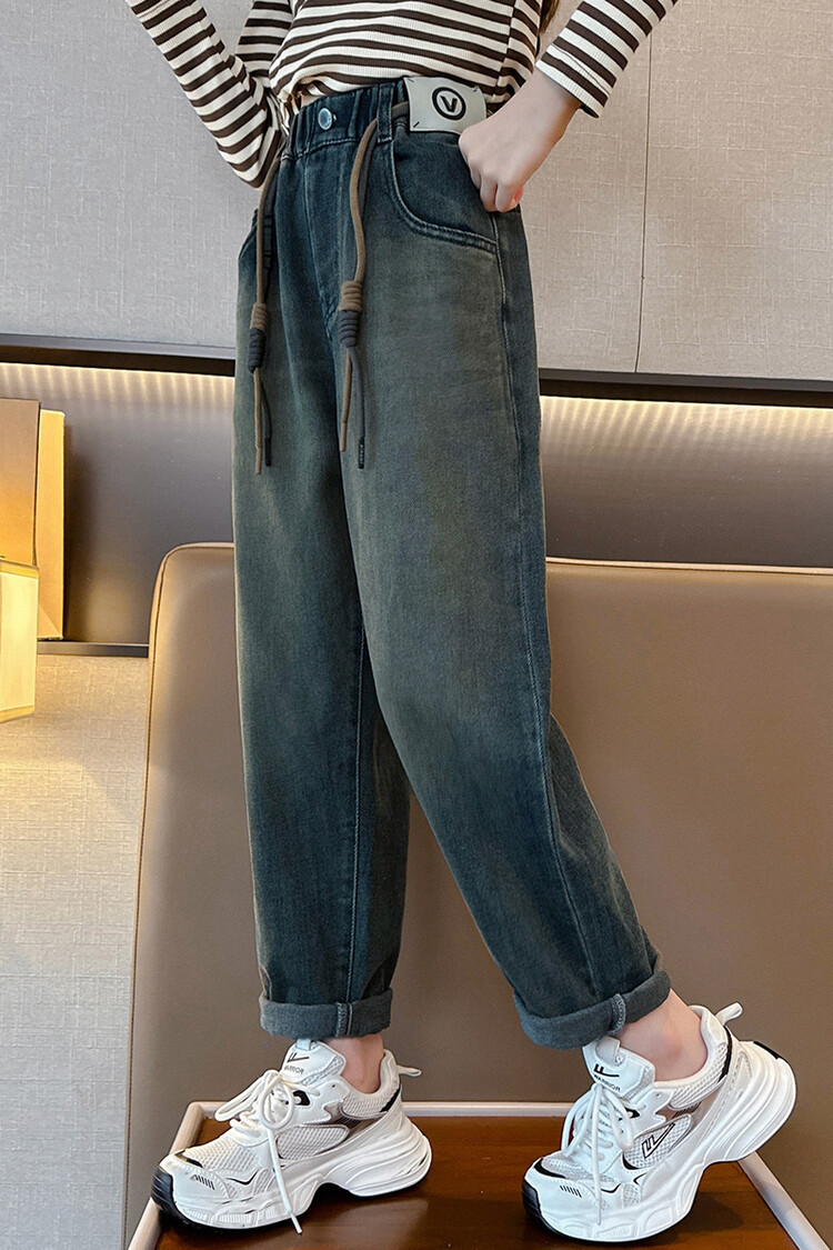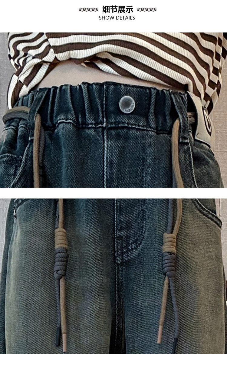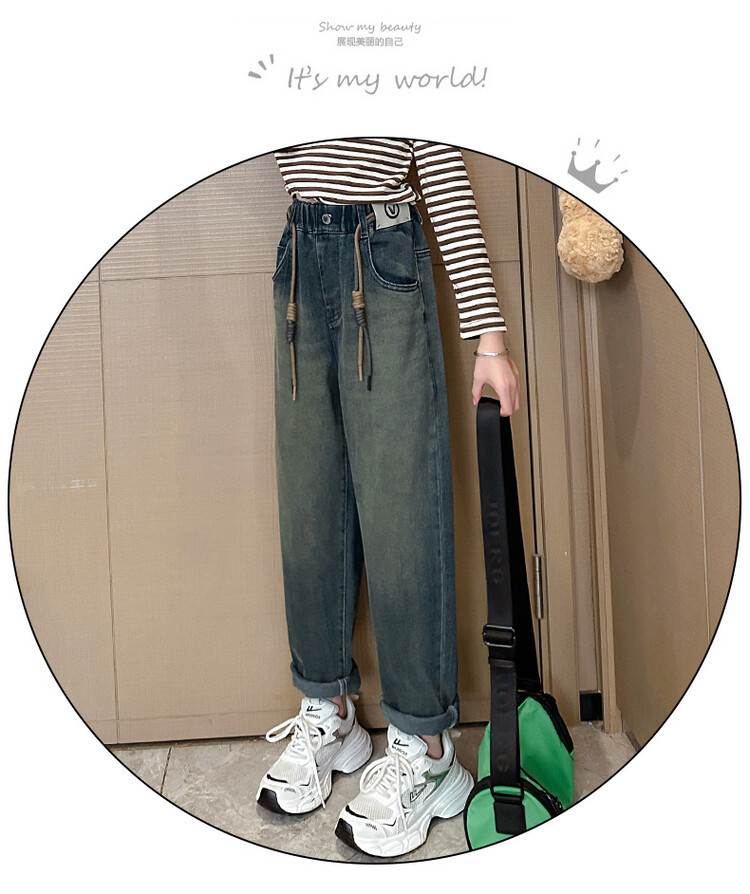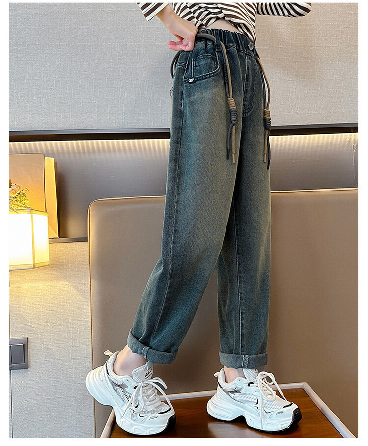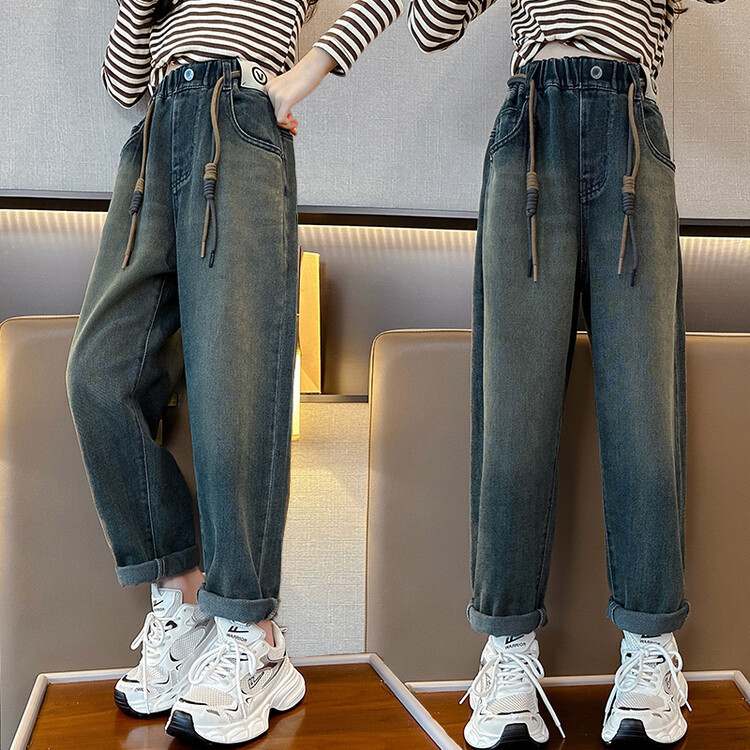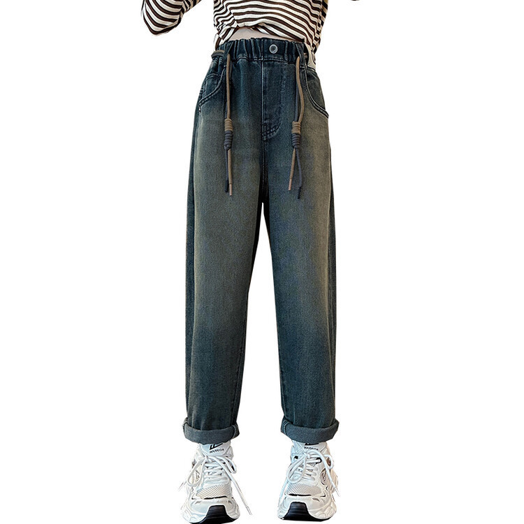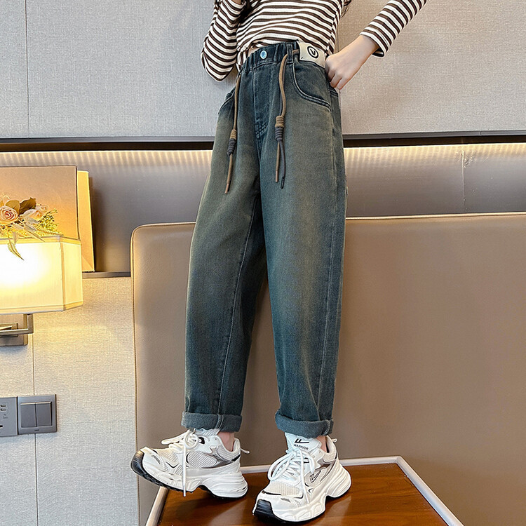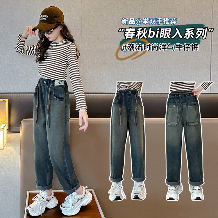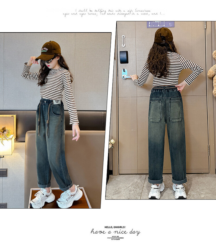 소녀 청바지 2024 새로운 어린이 바지 넓은 다리 바지 스트레이트 다리 바지 서양식 슬리밍 한국 스타일 트렌디스토어 가기