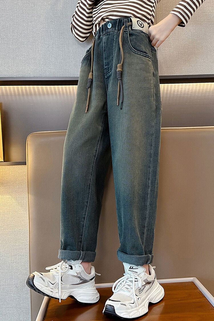 소녀 청바지 2024 새로운 어린이 바지 넓은 다리 바지 스트레이트 다리 바지 서양식 슬리밍 한국 스타일 트렌디