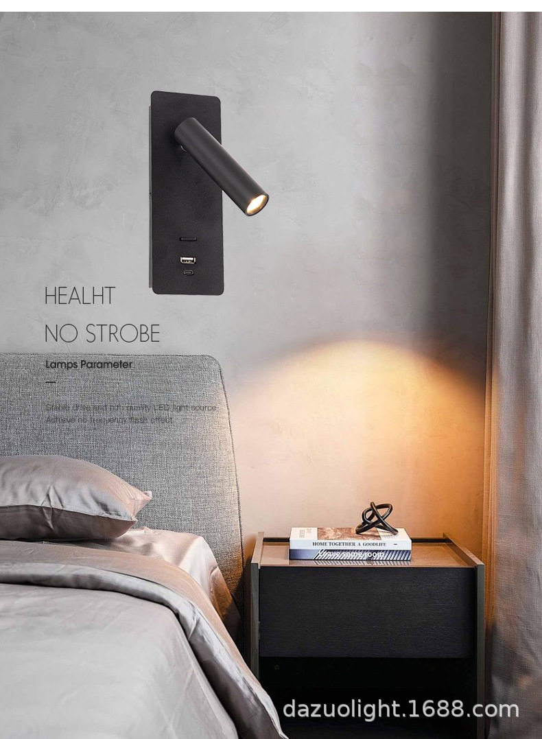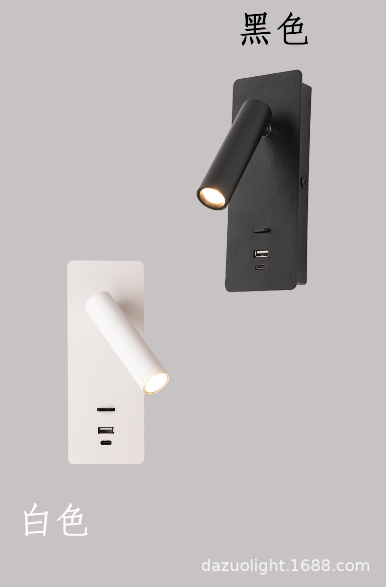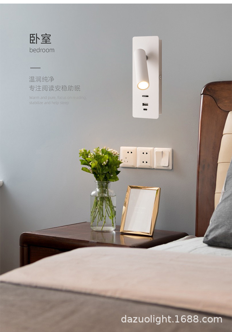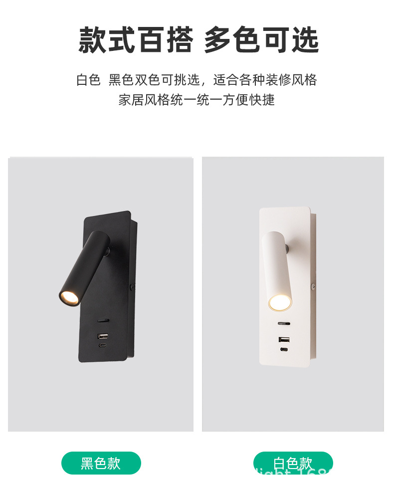 재고 듀얼 USB 회전 벽 램프 호텔 매장 홈스테이 침실 침대 옆 거실 연구 LED 독서 조명
