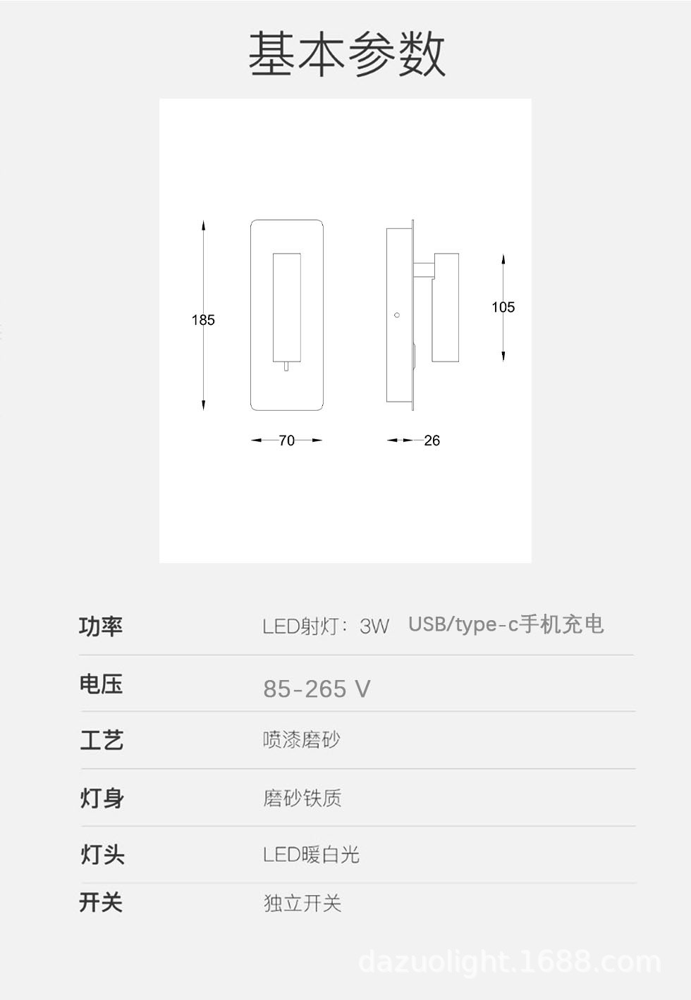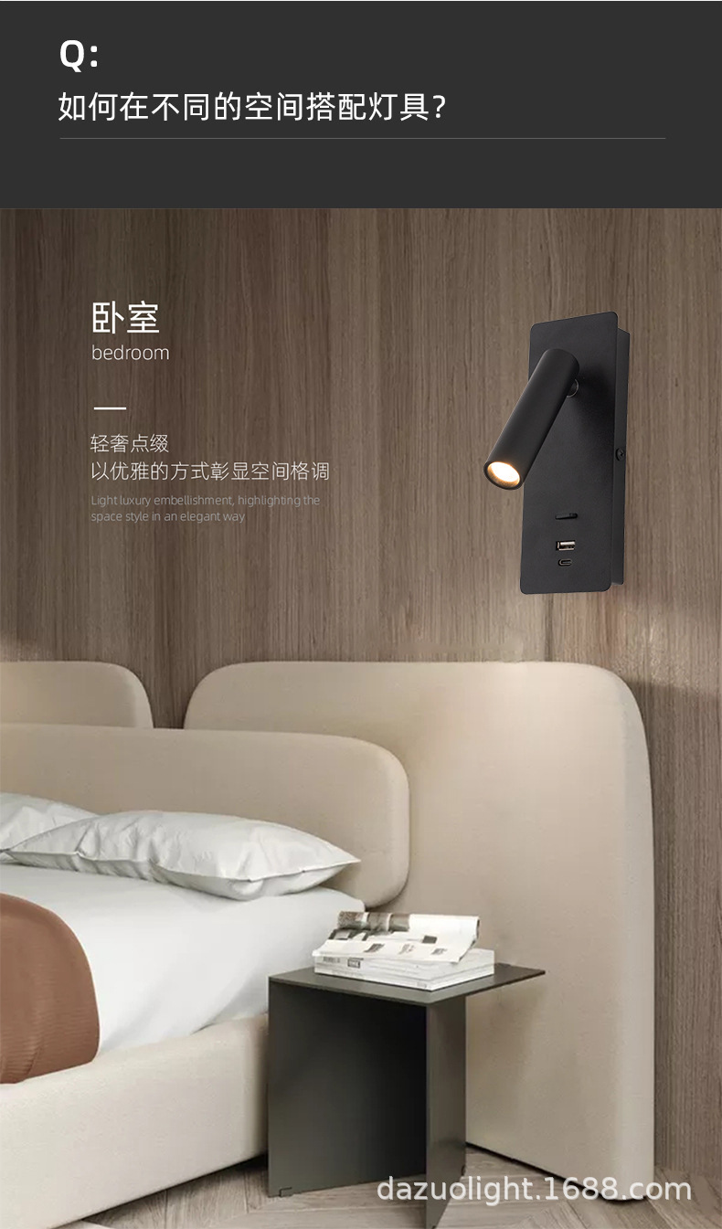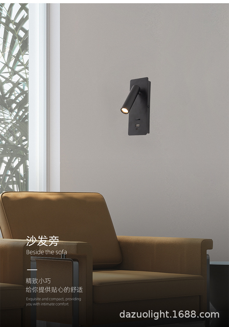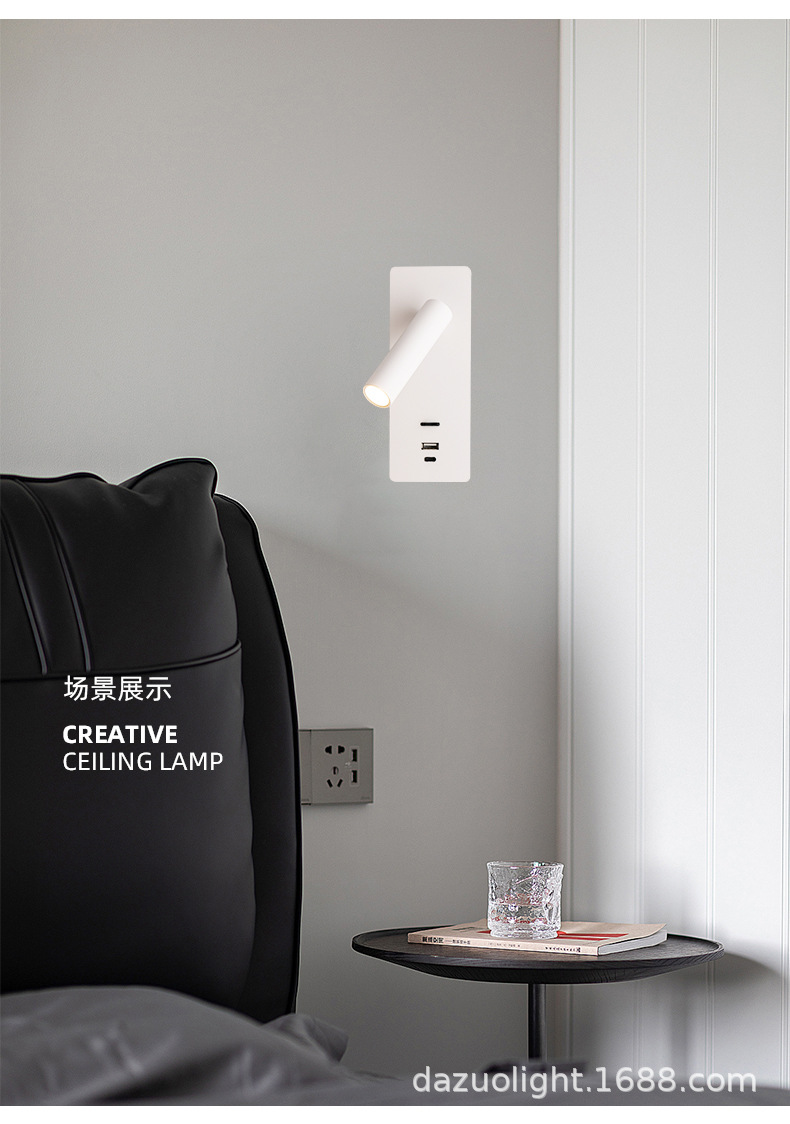 재고 듀얼 USB 회전 벽 램프 호텔 매장 홈스테이 침실 침대 옆 거실 연구 LED 독서 조명
