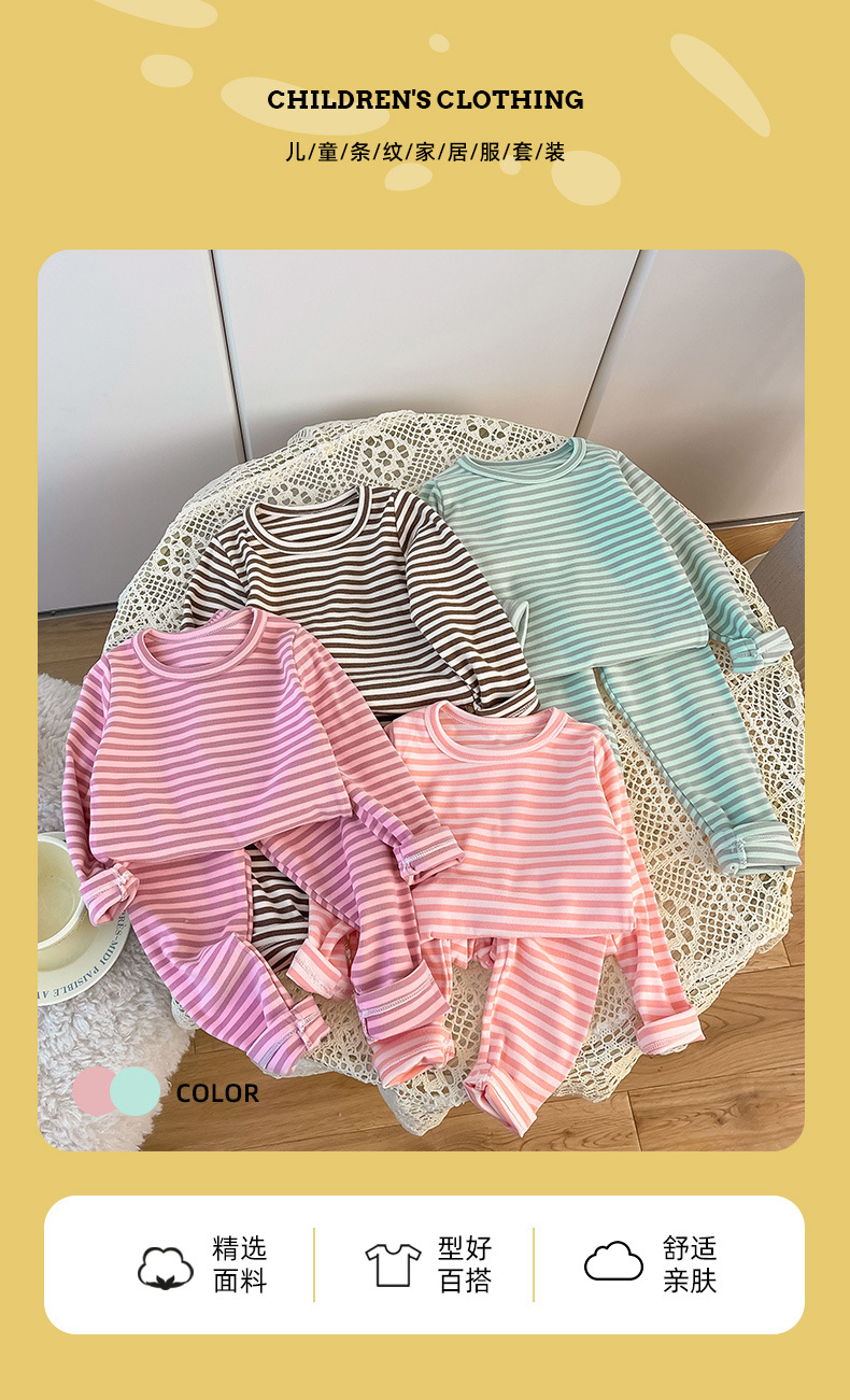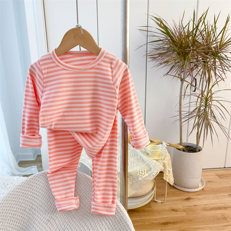 어린이 줄무늬 벨벳 홈 옷 남학생 속옷 세트 여자 아기의 가을 옷 가을 바지 아기 어린이 따뜻한 잠옷