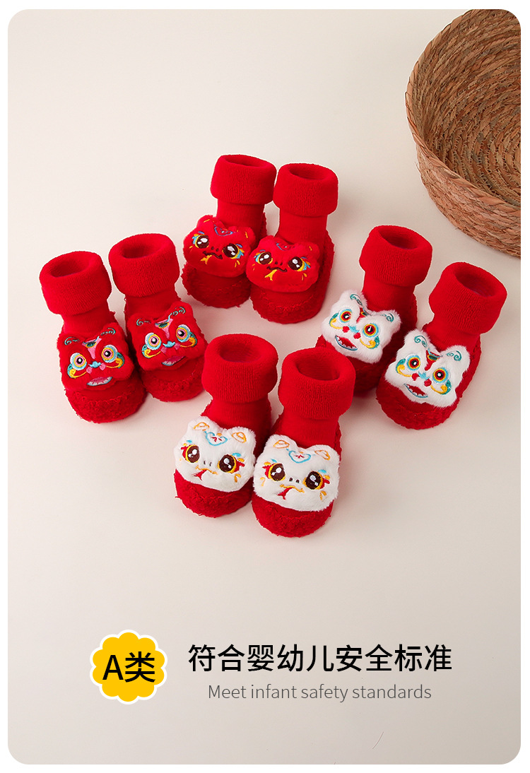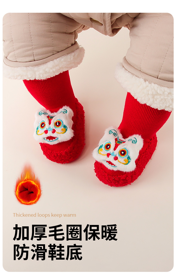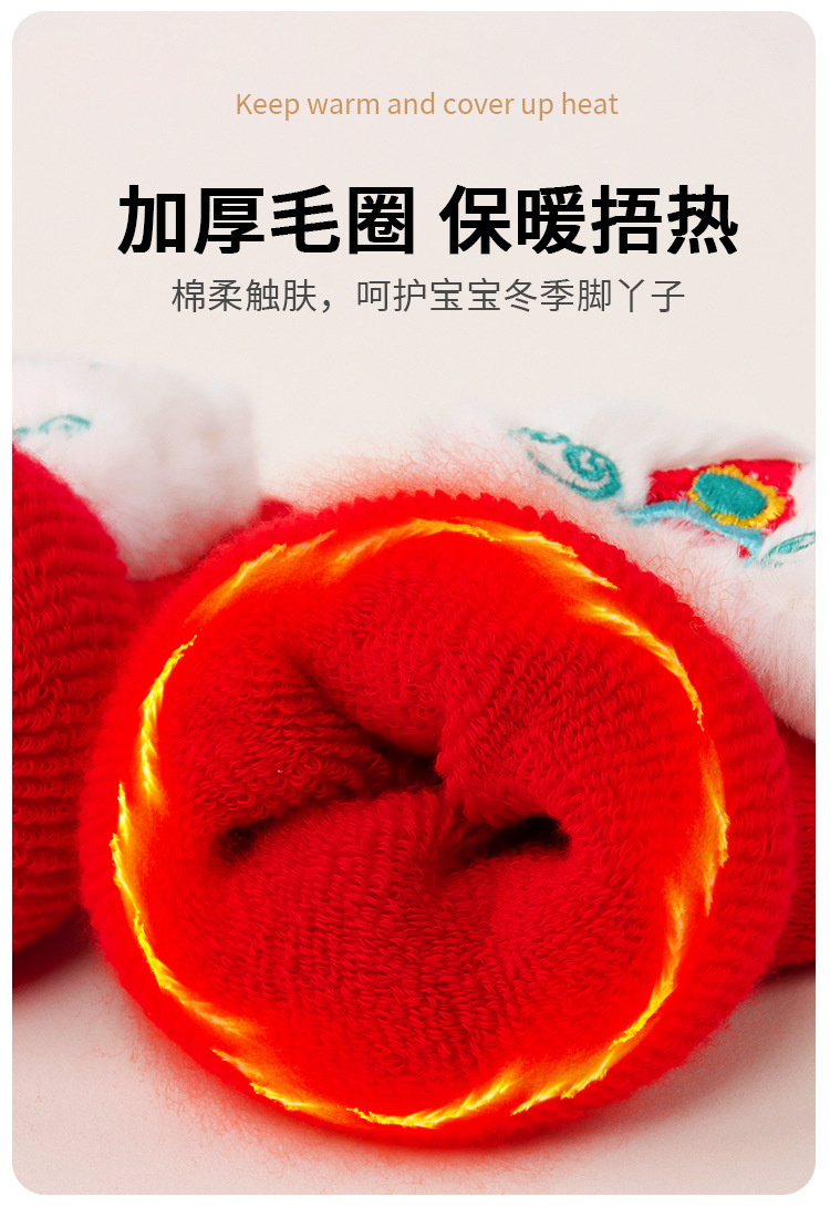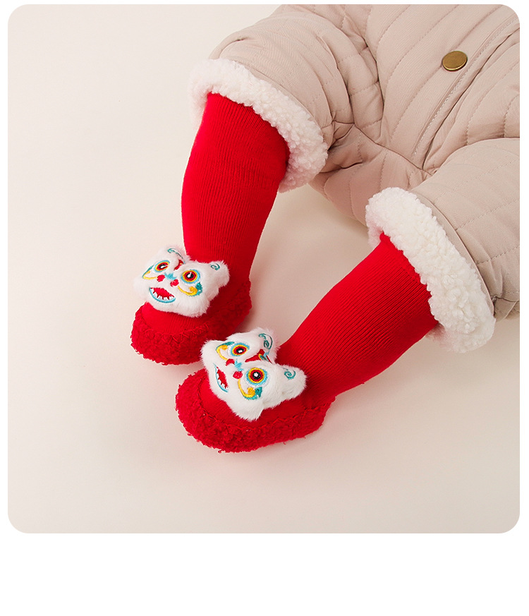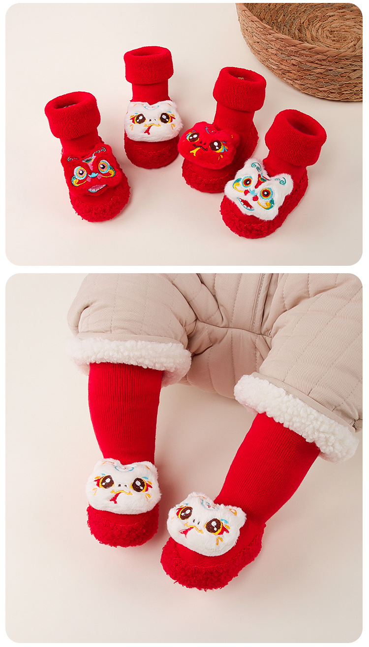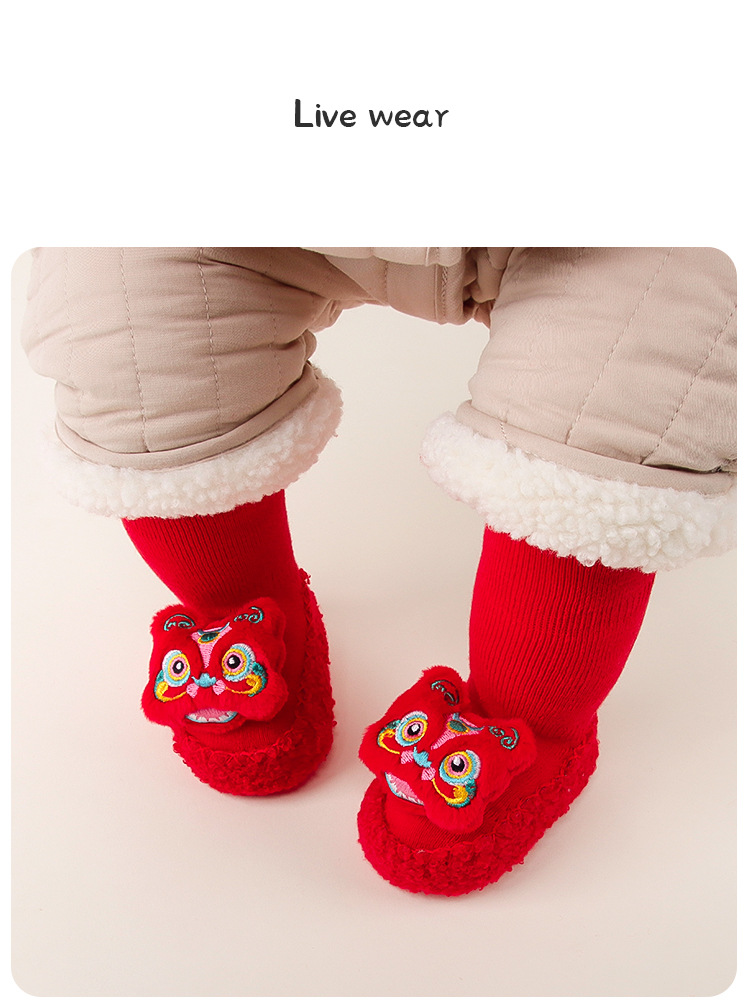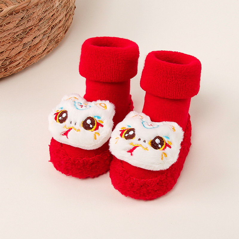 아기 바닥 양말 겨울 붉은 보름달 아기 유아 신발 양말 신생아 새해 두꺼운 테리 미드 튜브 양말 신발스토어 가기