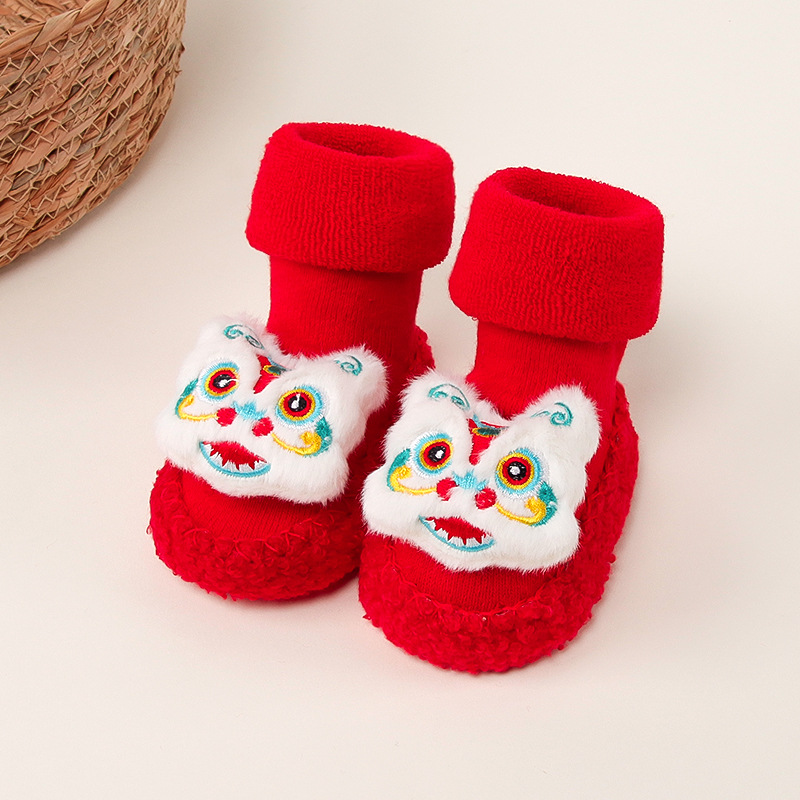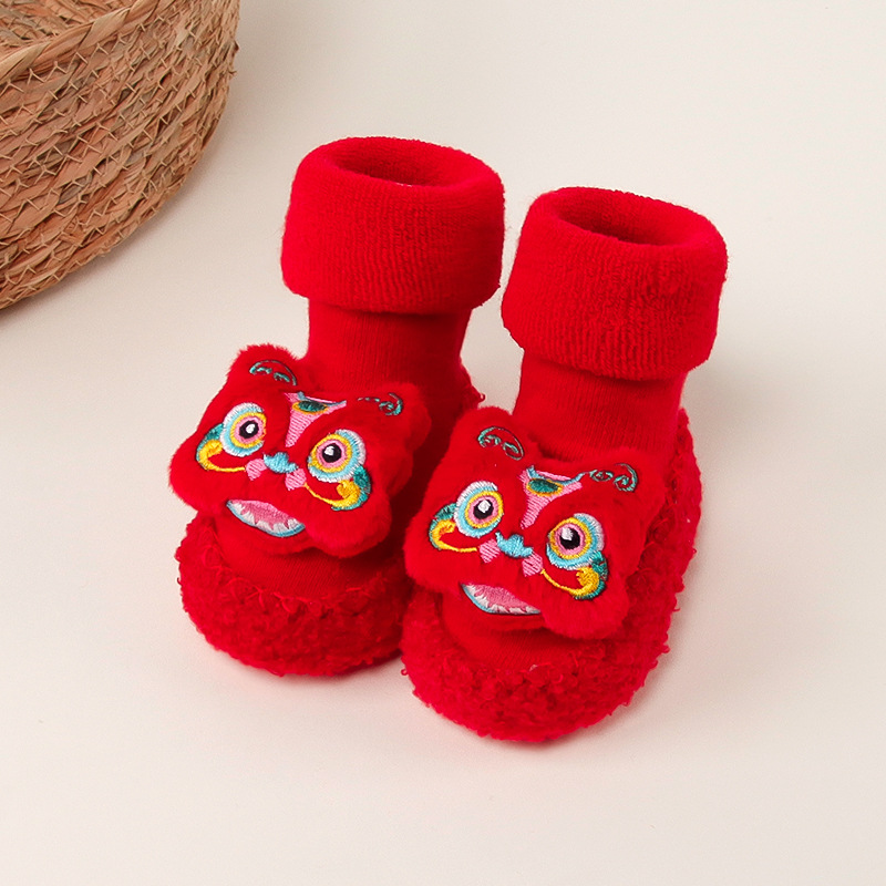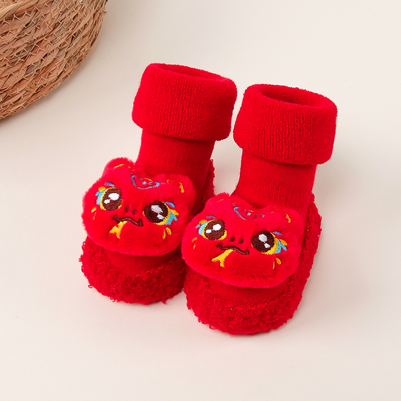 아기 바닥 양말 겨울 붉은 보름달 아기 유아 신발 양말 신생아 새해 두꺼운 테리 미드 튜브 양말 신발