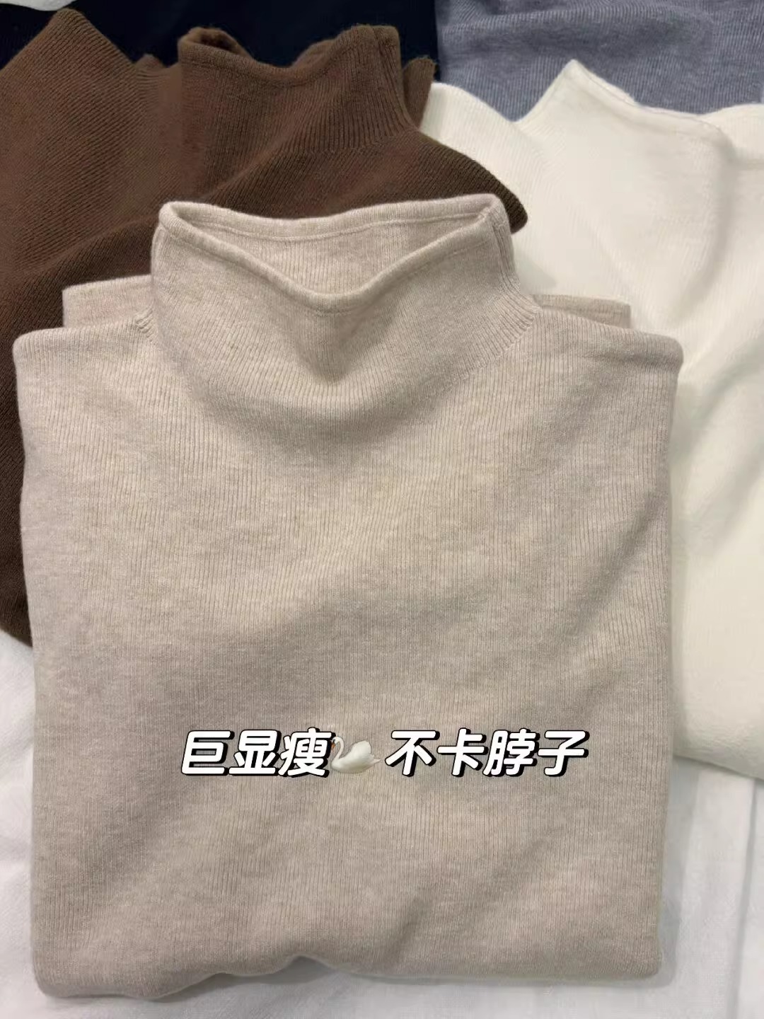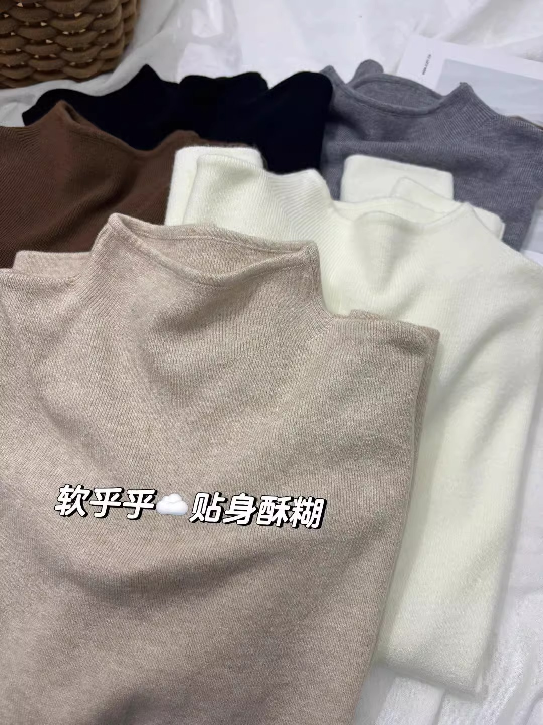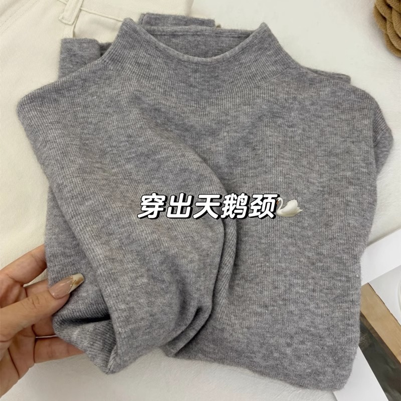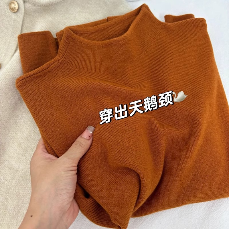 소프트 왁스 하프 하이 넥 니트 스웨터 여자 가을 및 겨울 올 매치 최고 한국식 슬리밍 솔리드 컬러 내부 미들 넥 스웨터베이스 셔츠스토어 가기