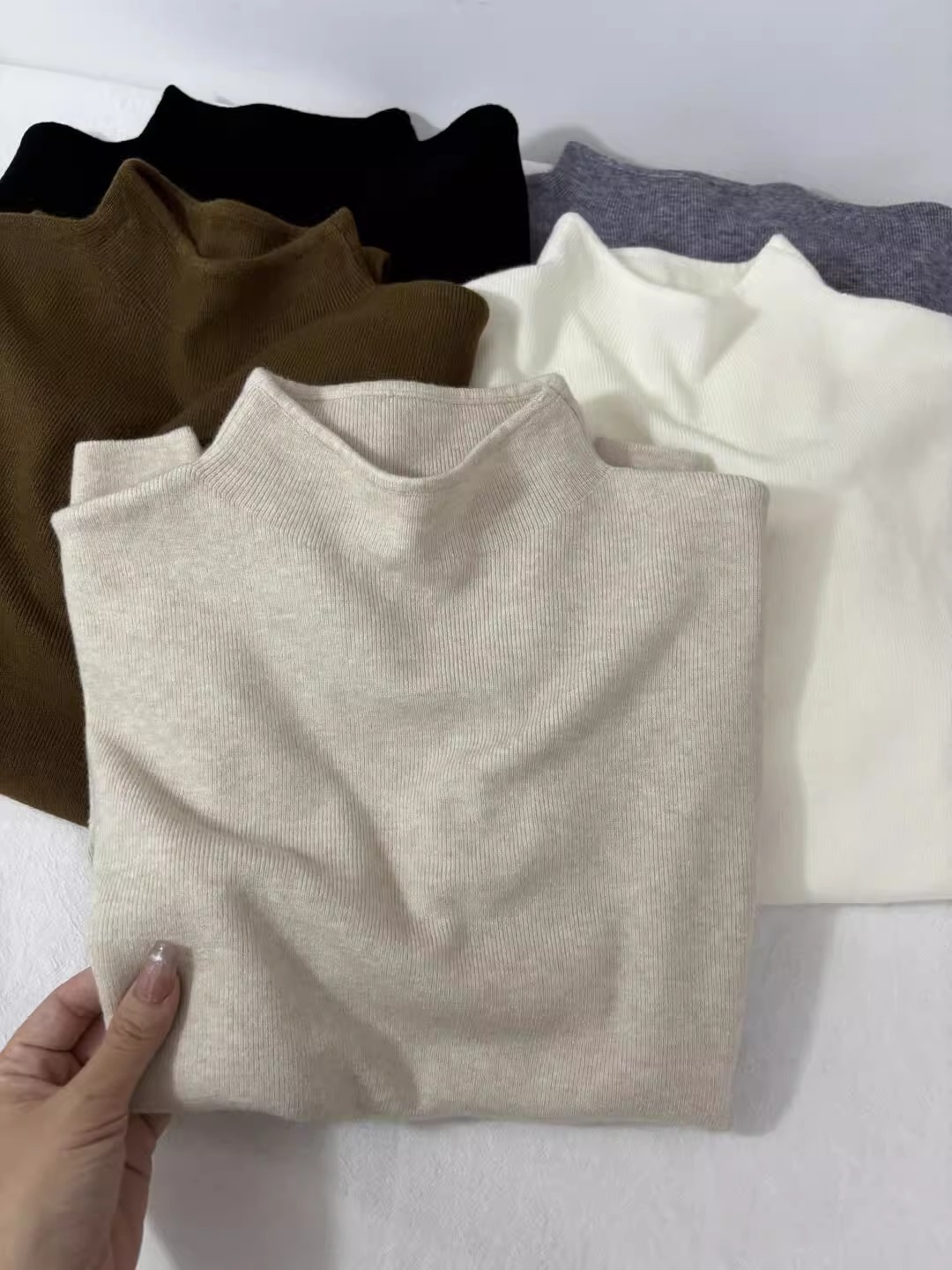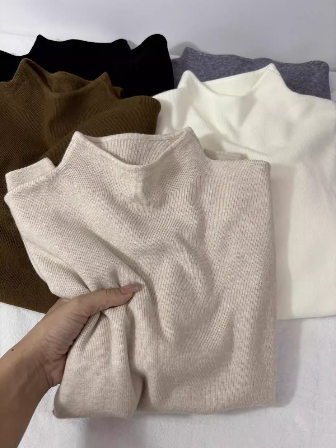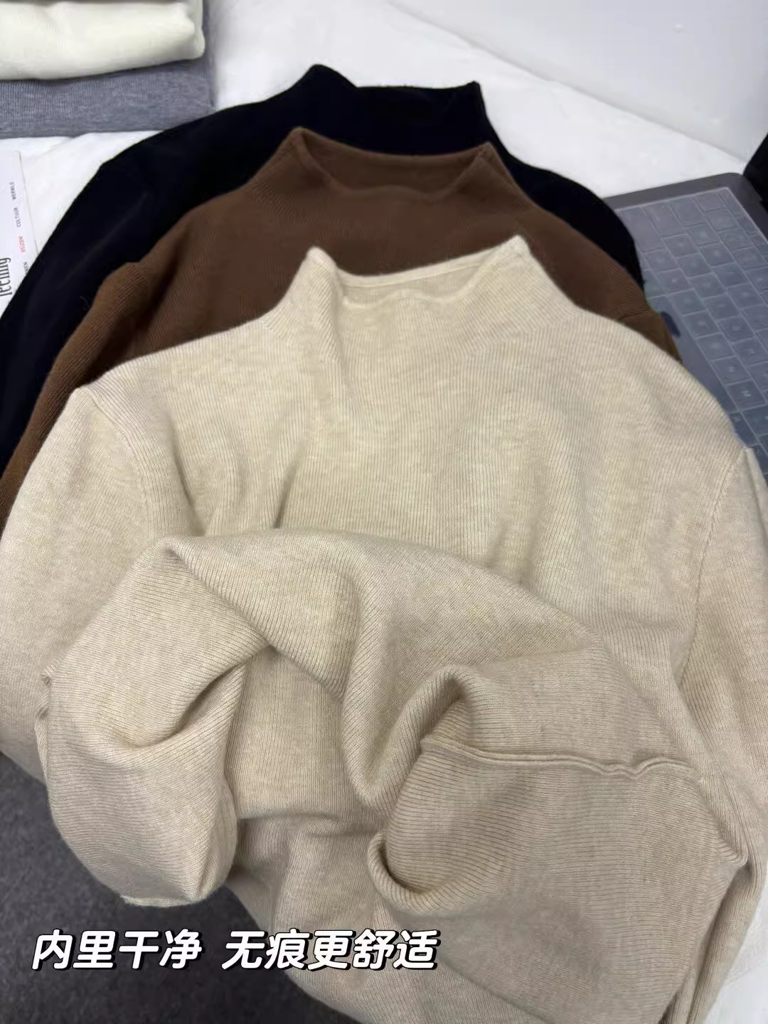 소프트 왁스 하프 하이 넥 니트 스웨터 여자 가을 및 겨울 올 매치 최고 한국식 슬리밍 솔리드 컬러 내부 미들 넥 스웨터베이스 셔츠스토어 가기