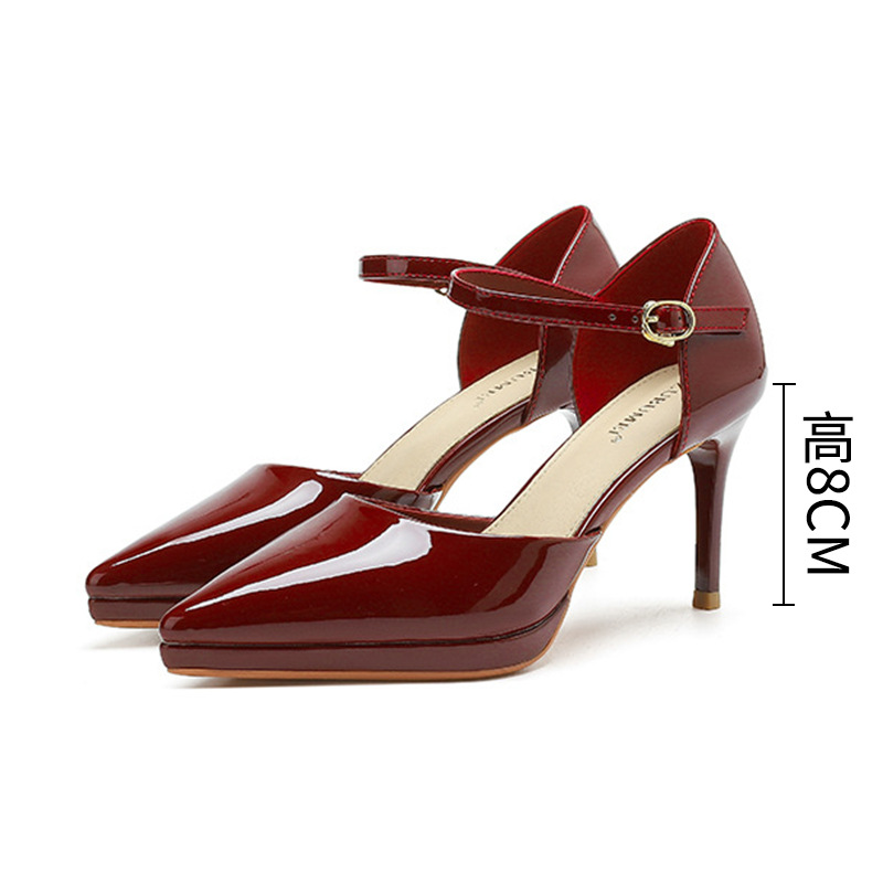 8088-10A 한 캐릭터 Baotou 할로우 샌들 여성용 뾰족한 스틸레토 힐스 여성용 플랫폼 하이힐 슈즈 여성용
