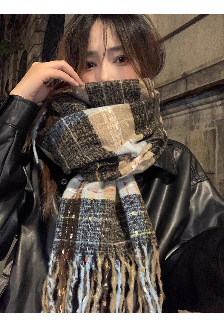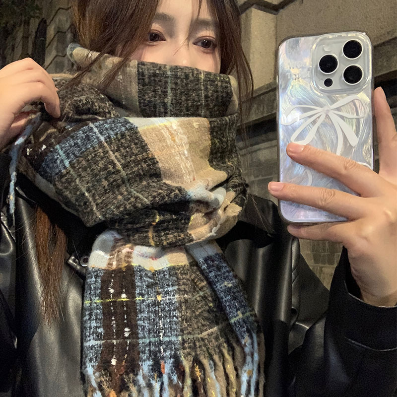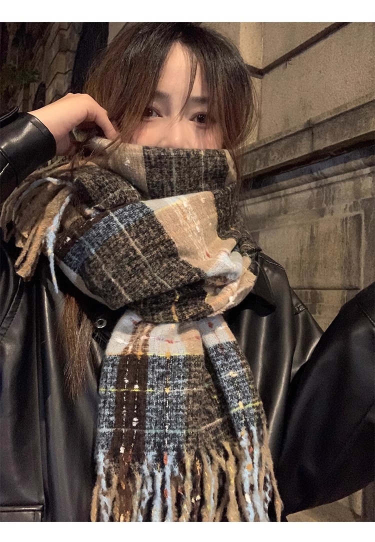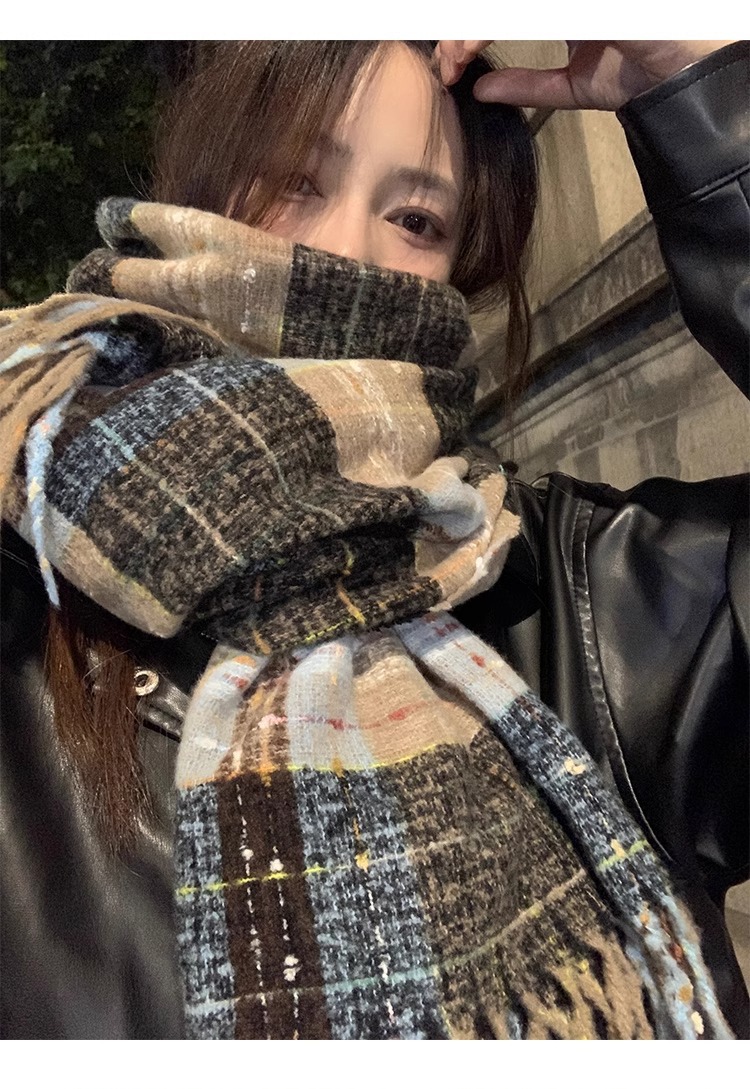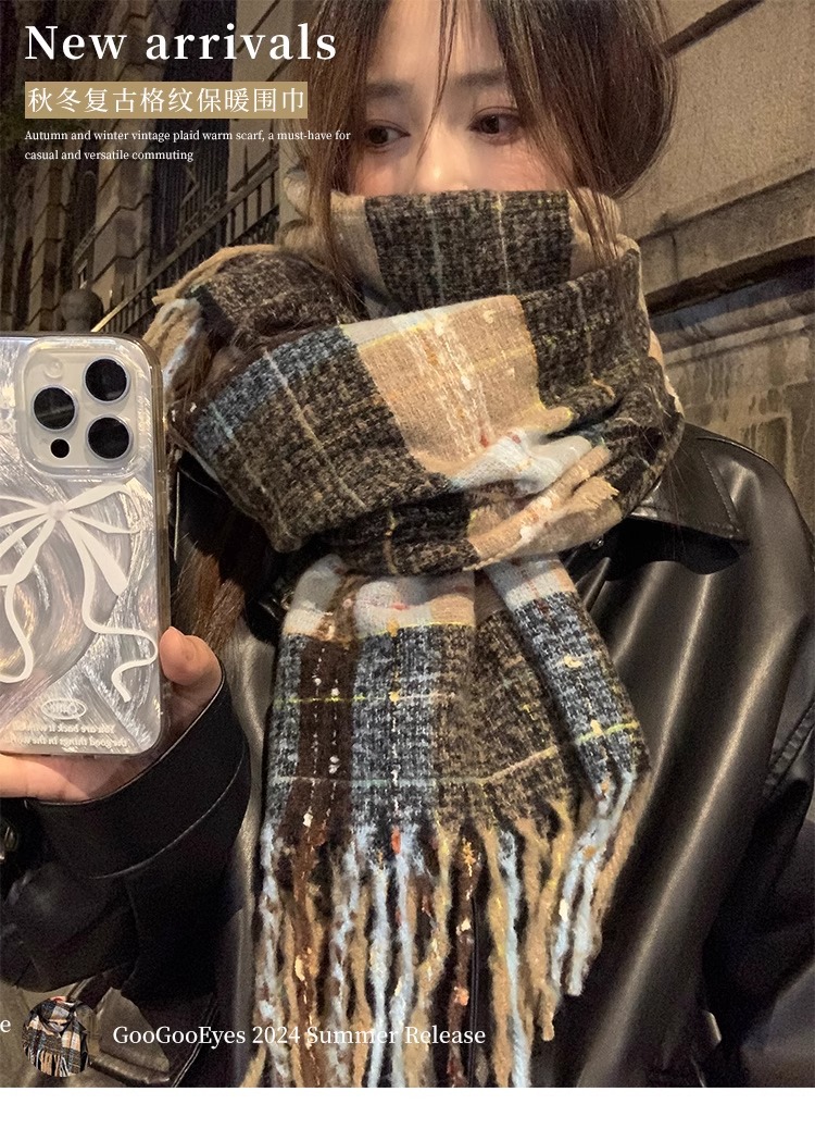 한국 스타일 복고풍 격자 무늬 스카프 여성의 겨울 캐시미어 분위기 부드러운 왁스 따뜻한 목도리 스카프 가을과 겨울 이중 사용 남성 스카프스토어 가기