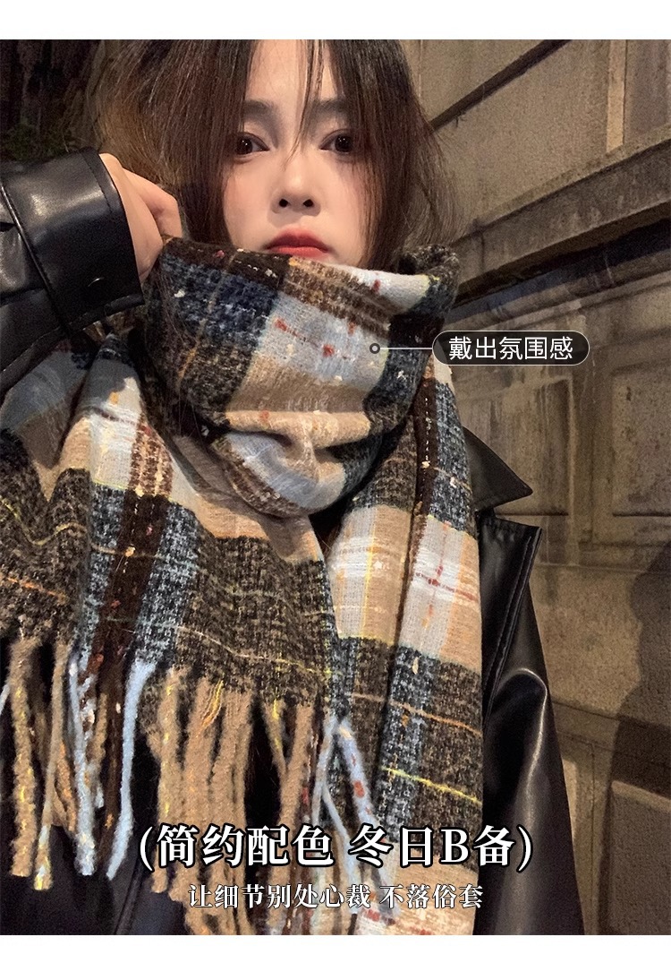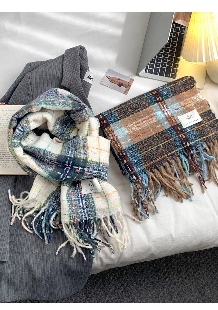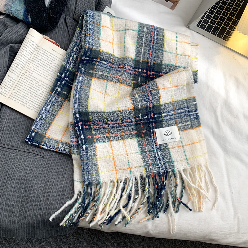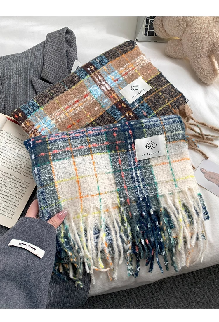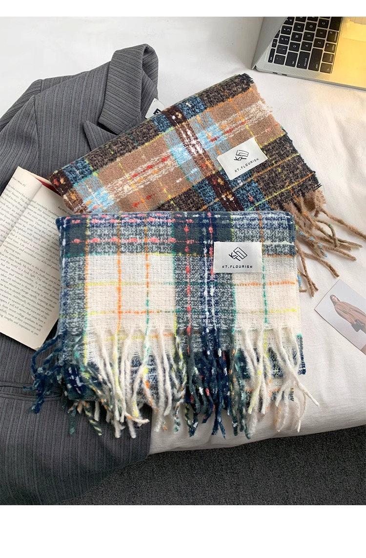 한국 스타일 복고풍 격자 무늬 스카프 여성의 겨울 캐시미어 분위기 부드러운 왁스 따뜻한 목도리 스카프 가을과 겨울 이중 사용 남성 스카프스토어 가기