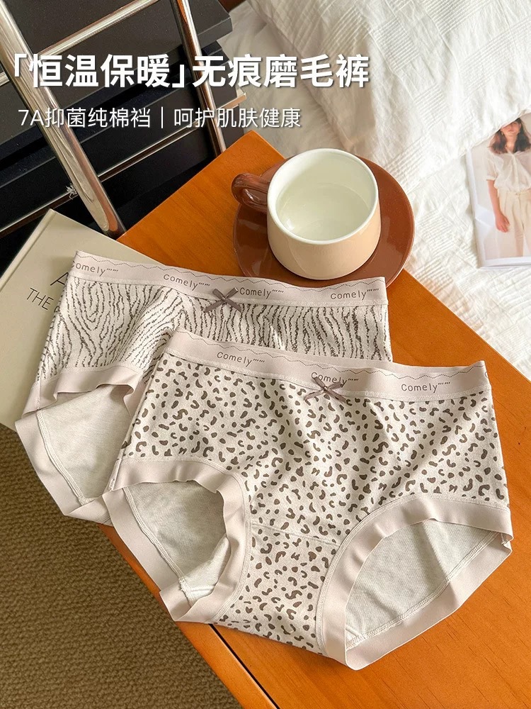 가을과 겨울 샌딩 레오파드 무늬 셀프 가열 속옷 여성용 허리 가방 엉덩이면 가랑이 원활한 가장자리 편안한 통기성 브리프스토어 가기
