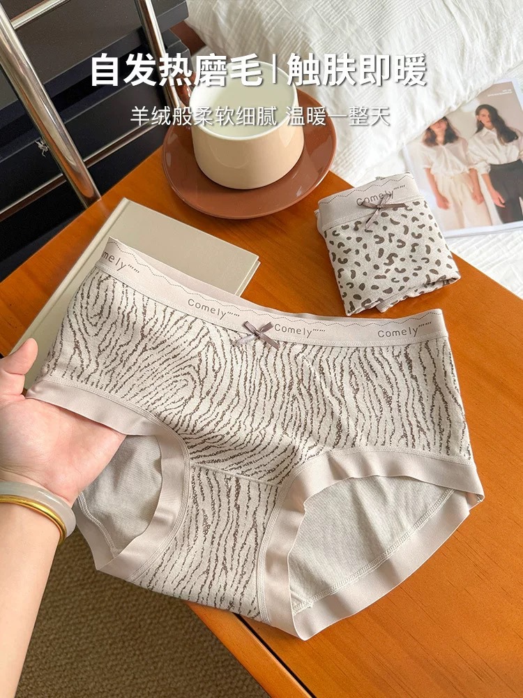 가을과 겨울 샌딩 레오파드 무늬 셀프 가열 속옷 여성용 허리 가방 엉덩이면 가랑이 원활한 가장자리 편안한 통기성 브리프