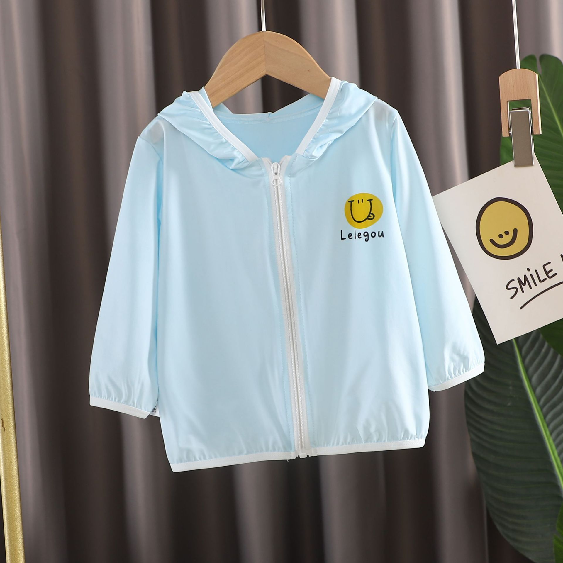 아이들의 새로운 여름 얇은 자외선 차단제 남성 보물 소녀 후드 코트 지퍼 아이스 실크 선 스크린 의류