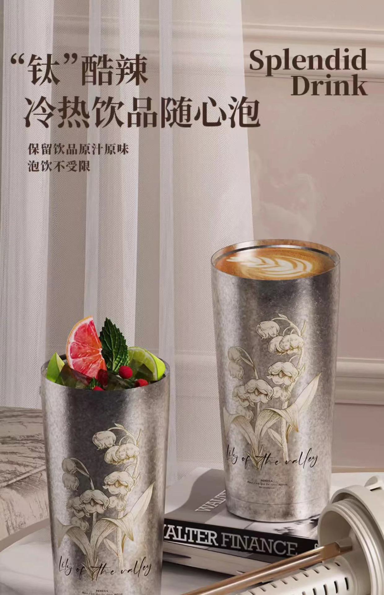 순수한 티타늄은 오키드 보온병 컵 2024 새로운 스타일 티타늄 컵 커피 대용량 물 컵 생일 선물 컵 소년 소녀를위한