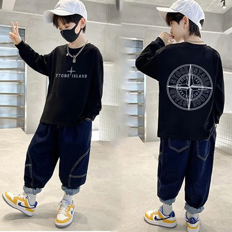 [100 면] 아동복 소년 티셔츠 긴팔 가을 어린이 중 · 빅 보이즈 탑 반소매 베이스 셔츠