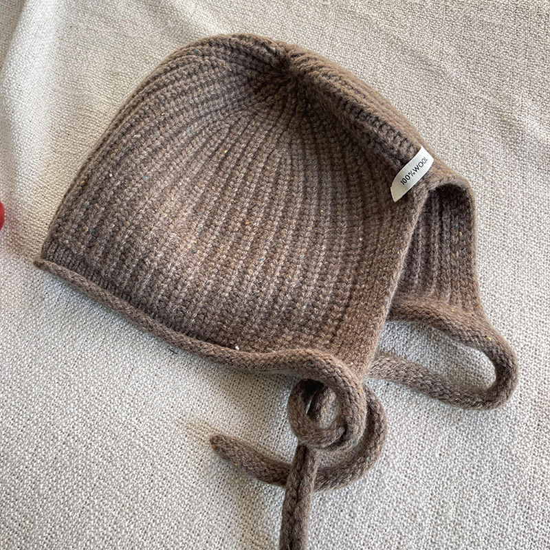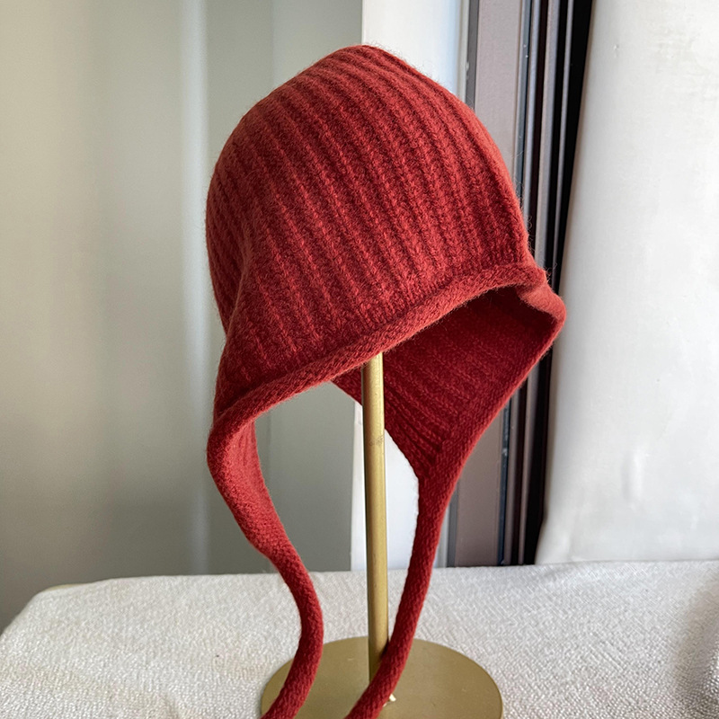 100 순수 양모 니트 모자 가을과 겨울 레이스 업 발가락 모자 여성 한국식 올매치 양모 냉랭한 따뜻한 귀 보호 모자