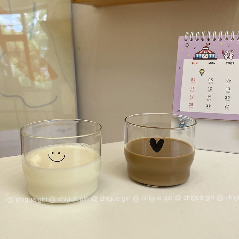 만화 in 웃는 아침 식사 컵 고온 저항하는 유리 디저트 우유 컵 커피 우유 차 차가운 음료 컵 Changzhen