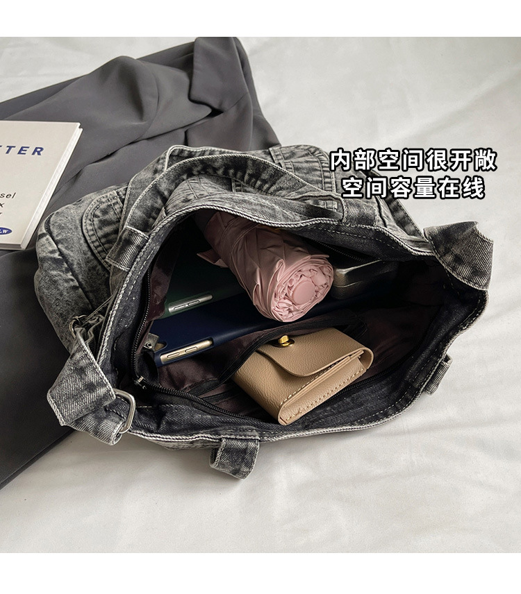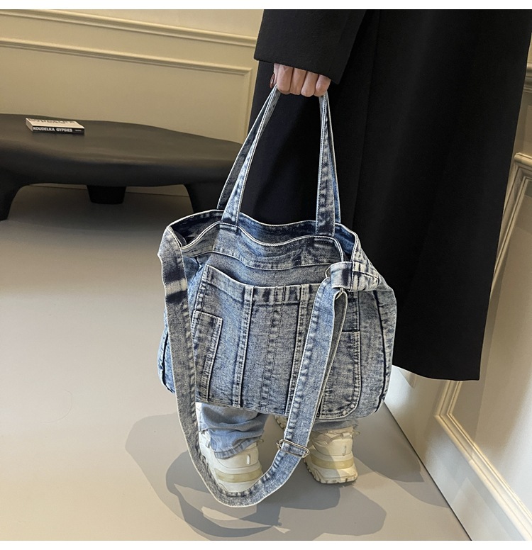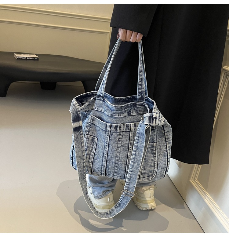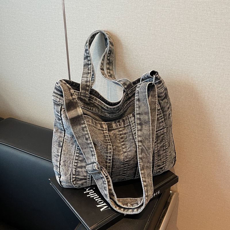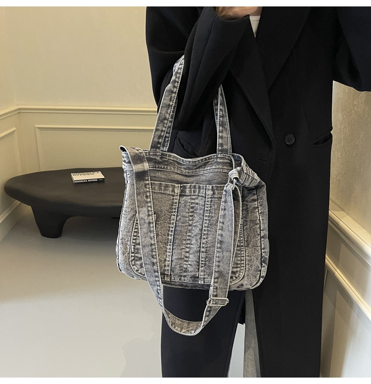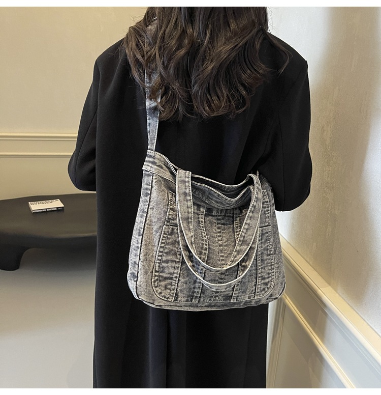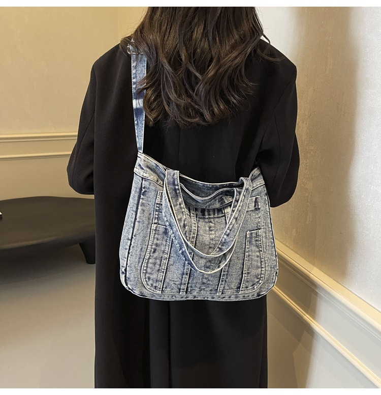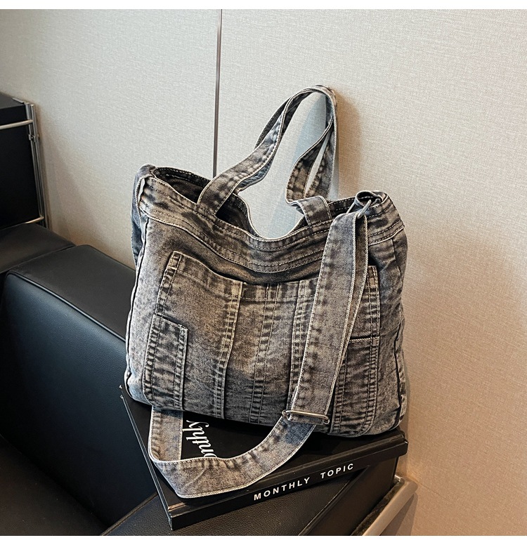 데님 레트로 새로운 프랑스 스타일 캐주얼 패션 대용량 클래스 크로스 바디 토트 백을위한 모든 매치 통근 어깨 가방