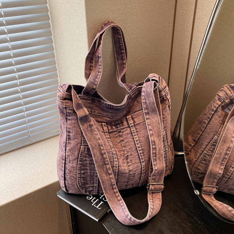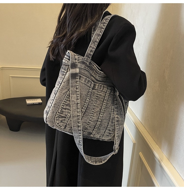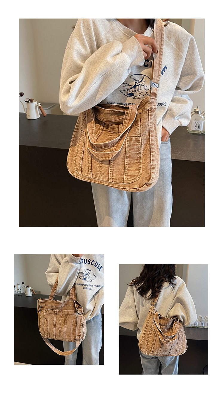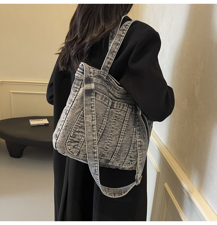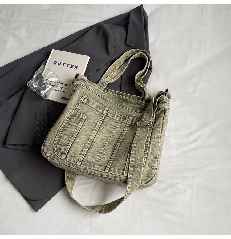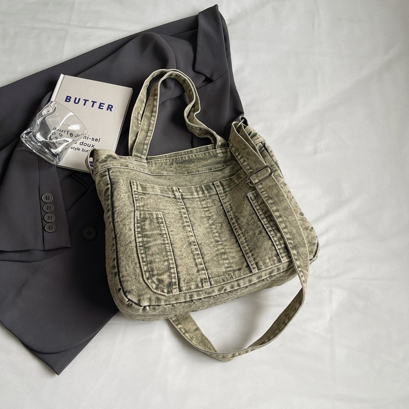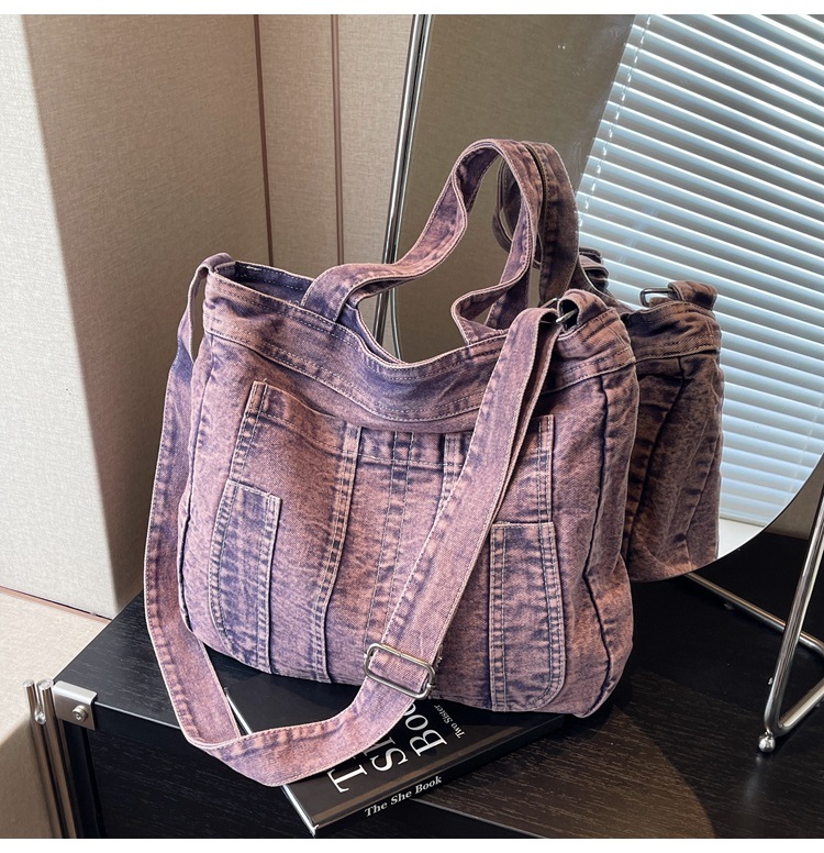 데님 레트로 새로운 프랑스 스타일 캐주얼 패션 대용량 클래스 크로스 바디 토트 백을위한 모든 매치 통근 어깨 가방