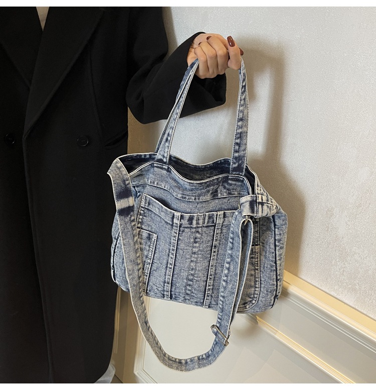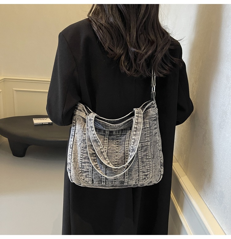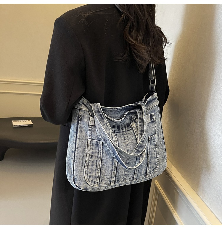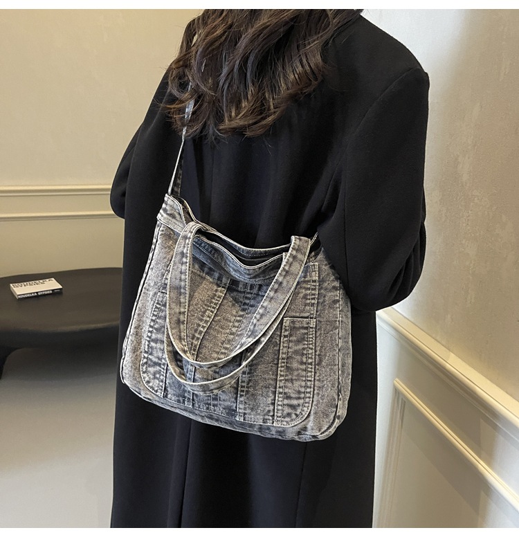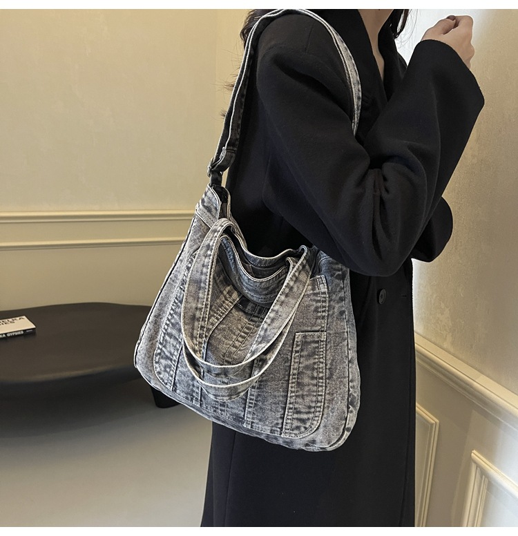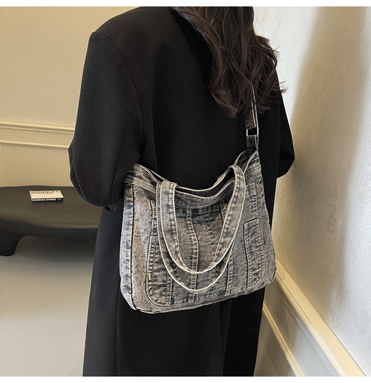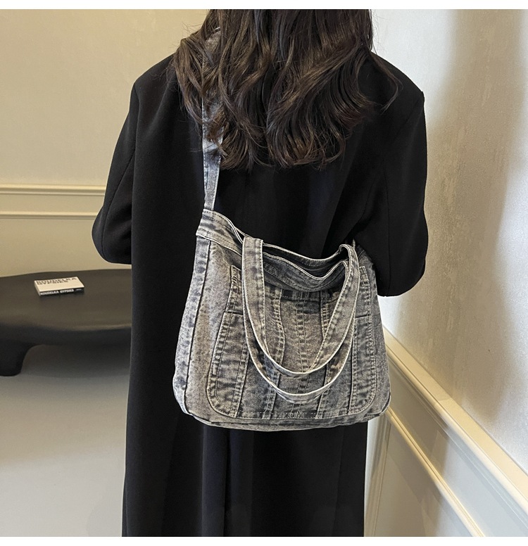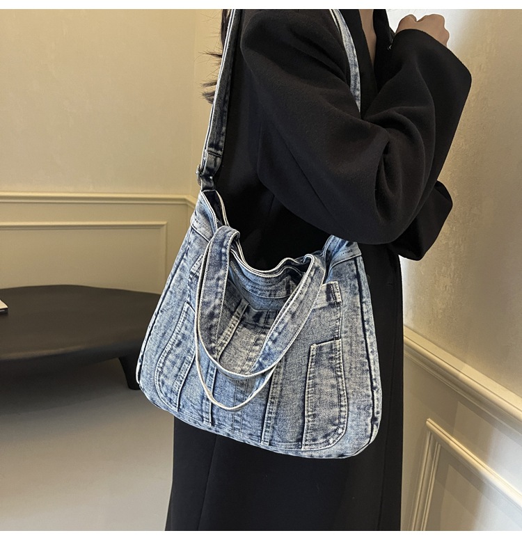 데님 레트로 새로운 프랑스 스타일 캐주얼 패션 대용량 클래스 크로스 바디 토트 백을위한 모든 매치 통근 어깨 가방스토어 가기