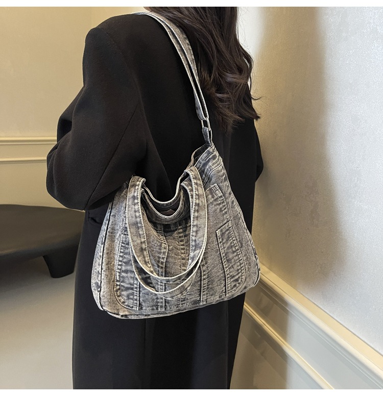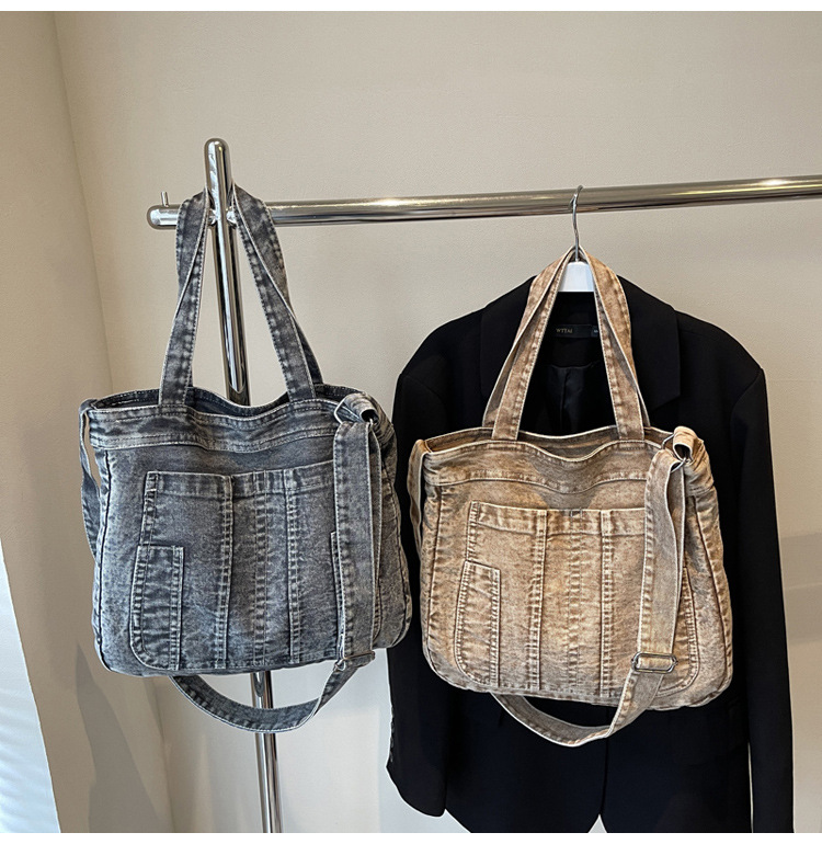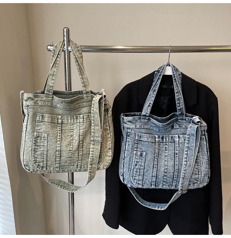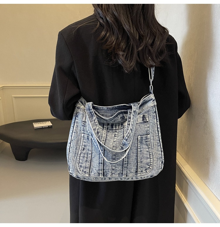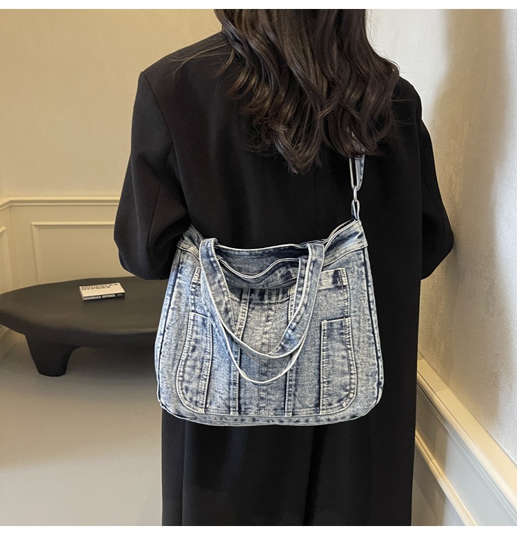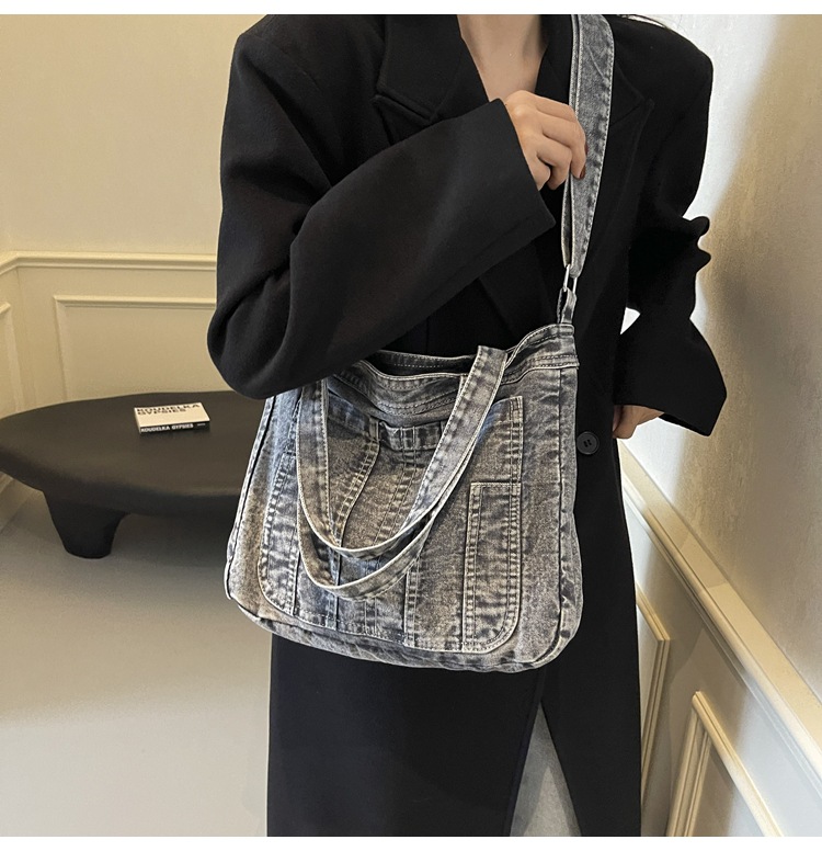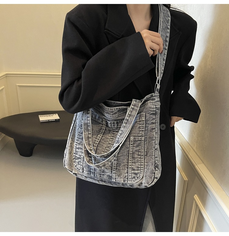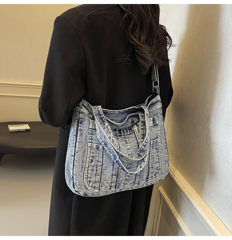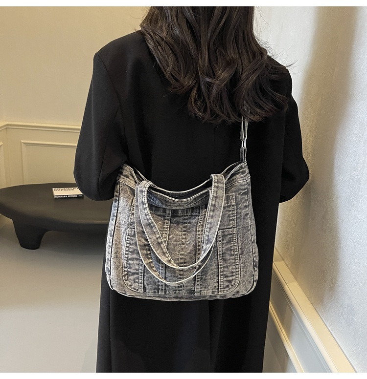 데님 레트로 새로운 프랑스 스타일 캐주얼 패션 대용량 클래스 크로스 바디 토트 백을위한 모든 매치 통근 어깨 가방스토어 가기