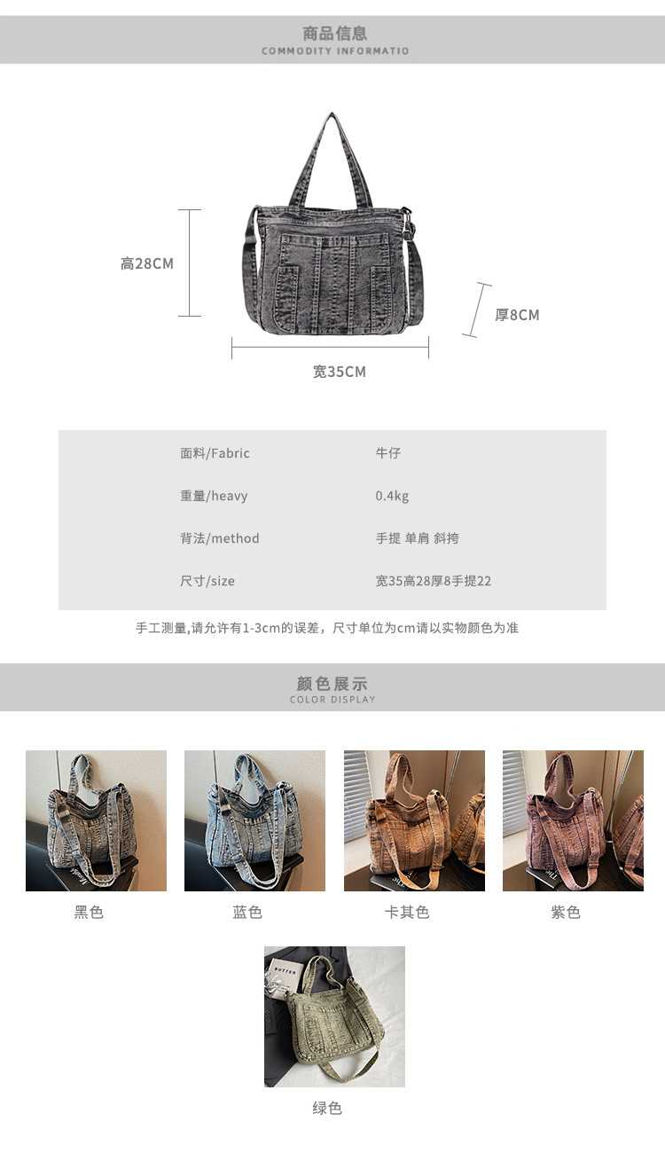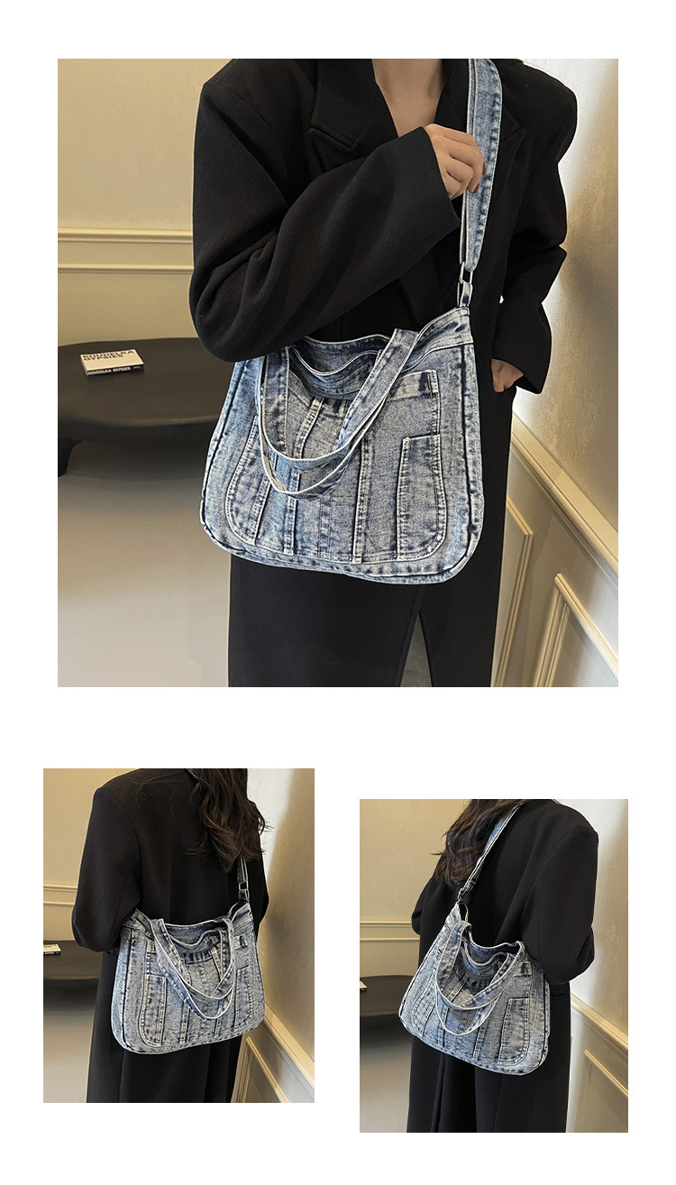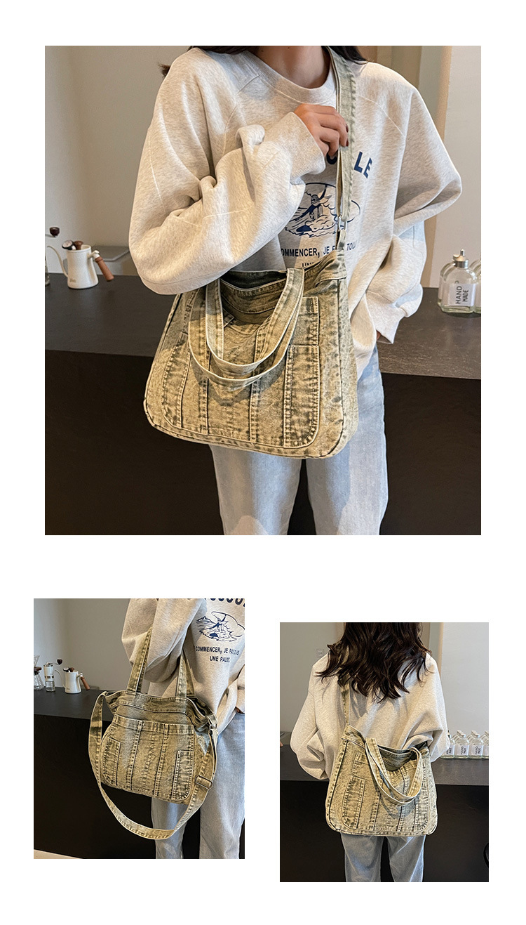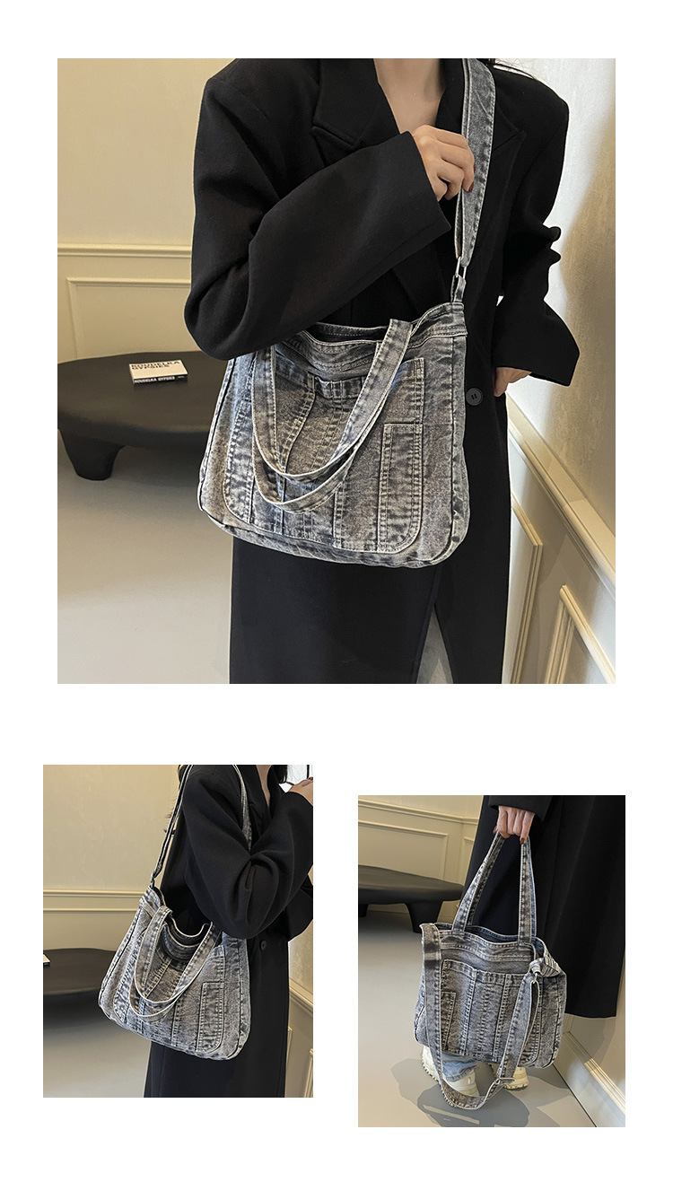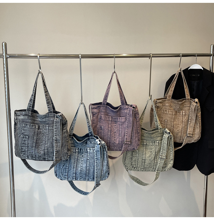 데님 레트로 새로운 프랑스 스타일 캐주얼 패션 대용량 클래스 크로스 바디 토트 백을위한 모든 매치 통근 어깨 가방스토어 가기