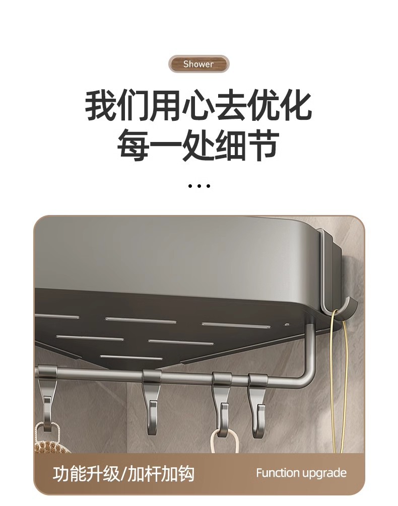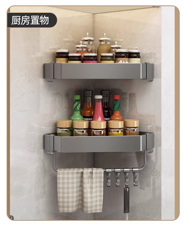 총 회색 욕실 삼각형 저장 랙 펀치 프리 샤워 룸 화장실 코너 삼각형 바구니 벽 장착 스토리지 랙
