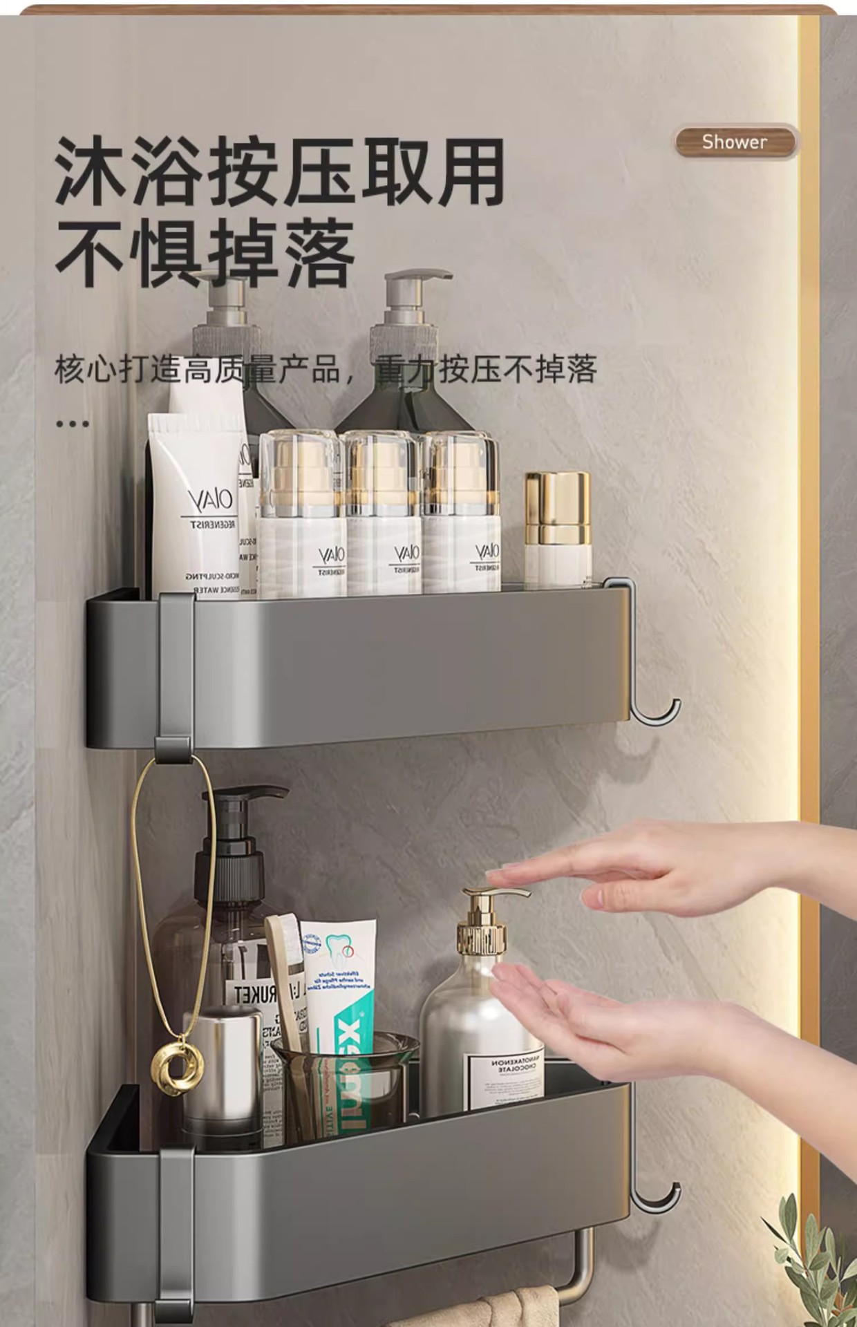 총 회색 욕실 삼각형 저장 랙 펀치 프리 샤워 룸 화장실 코너 삼각형 바구니 벽 장착 스토리지 랙스토어 가기