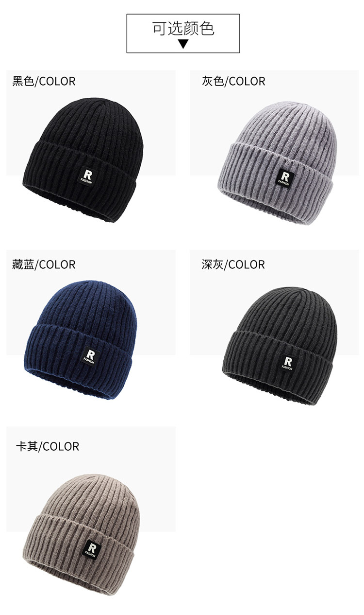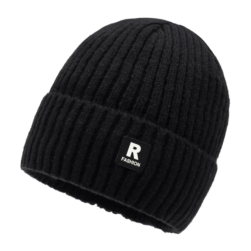 R 표준 남성 울 모자 새로운 겨울 기모 두꺼운 따뜻한 니트 모자 청소년 패션 풀오버 모자 크로스 테두리
