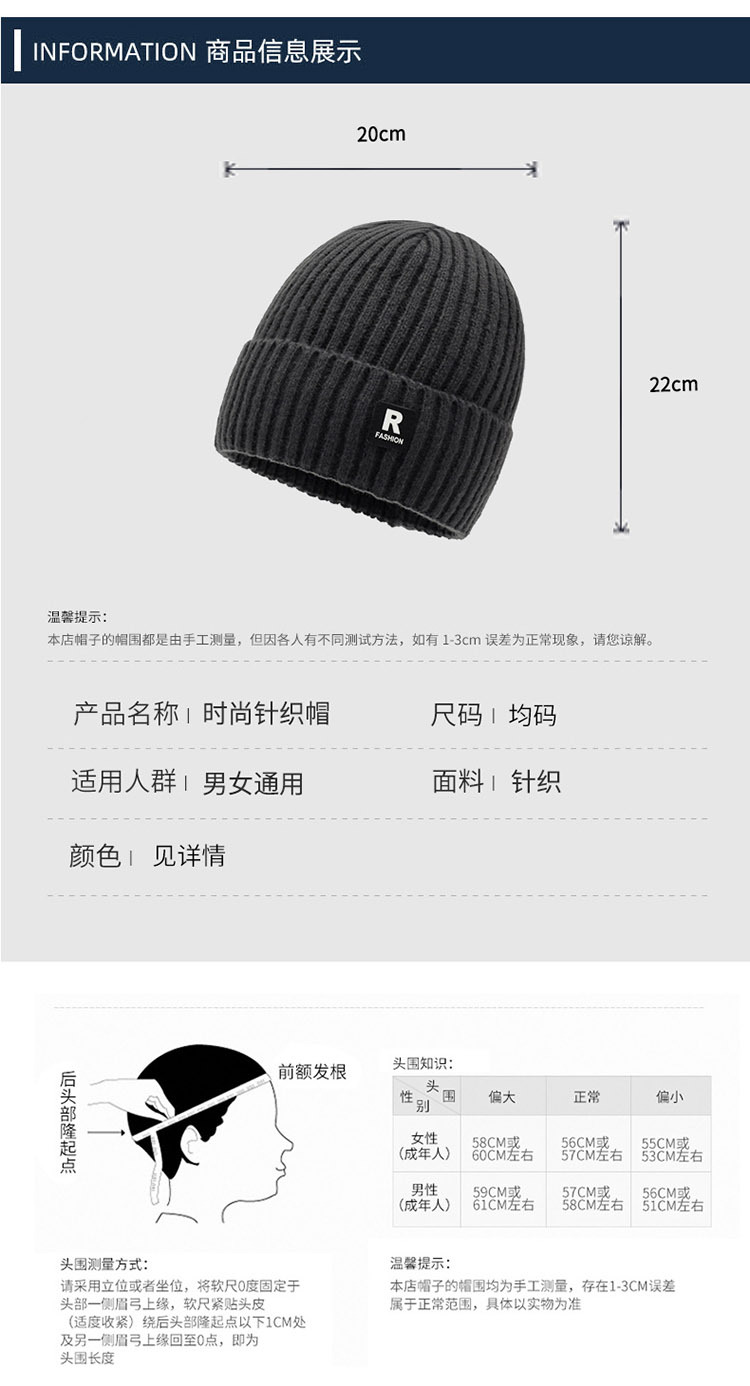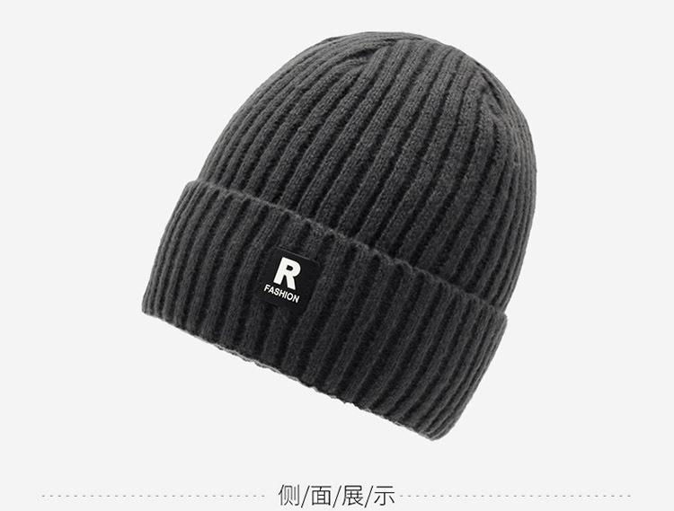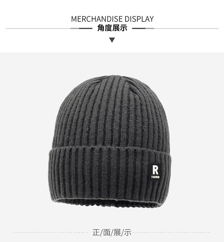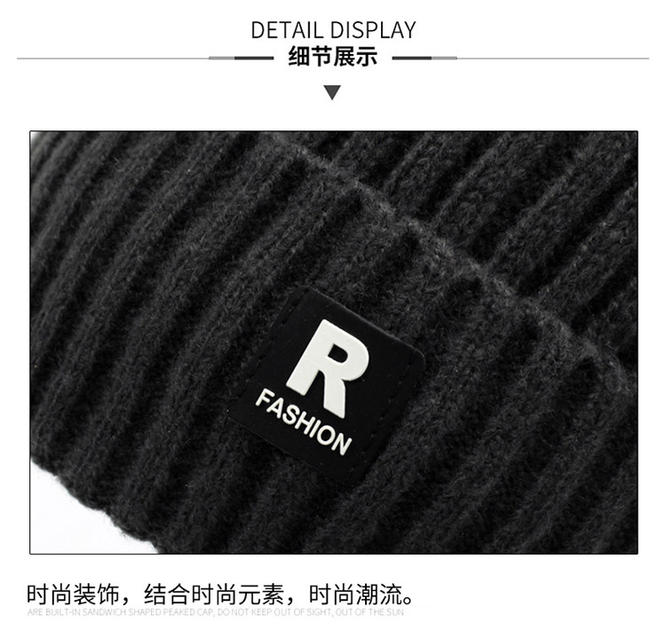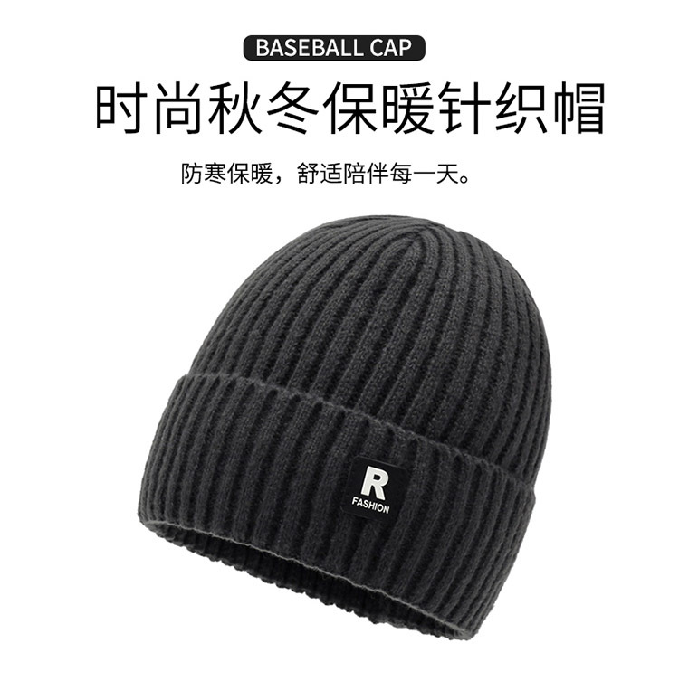 R 표준 남성 울 모자 새로운 겨울 기모 두꺼운 따뜻한 니트 모자 청소년 패션 풀오버 모자 크로스 테두리스토어 가기