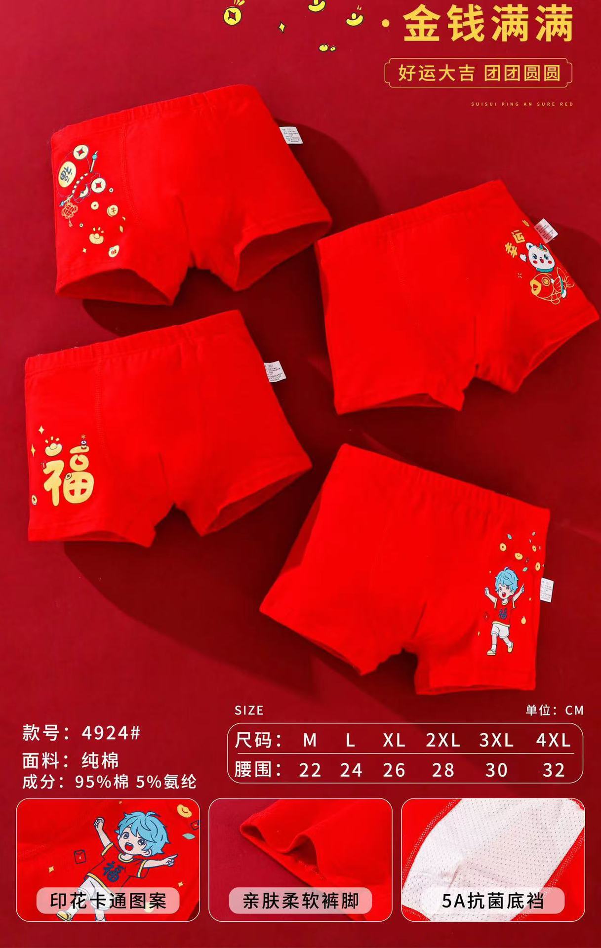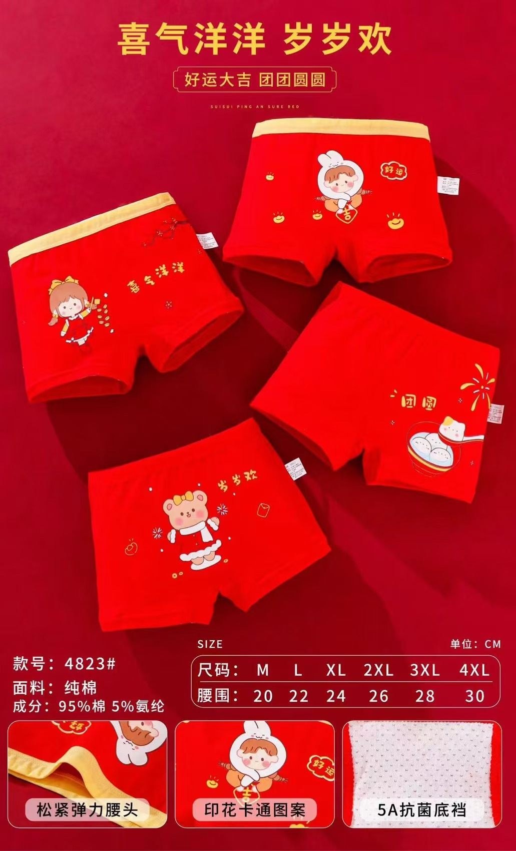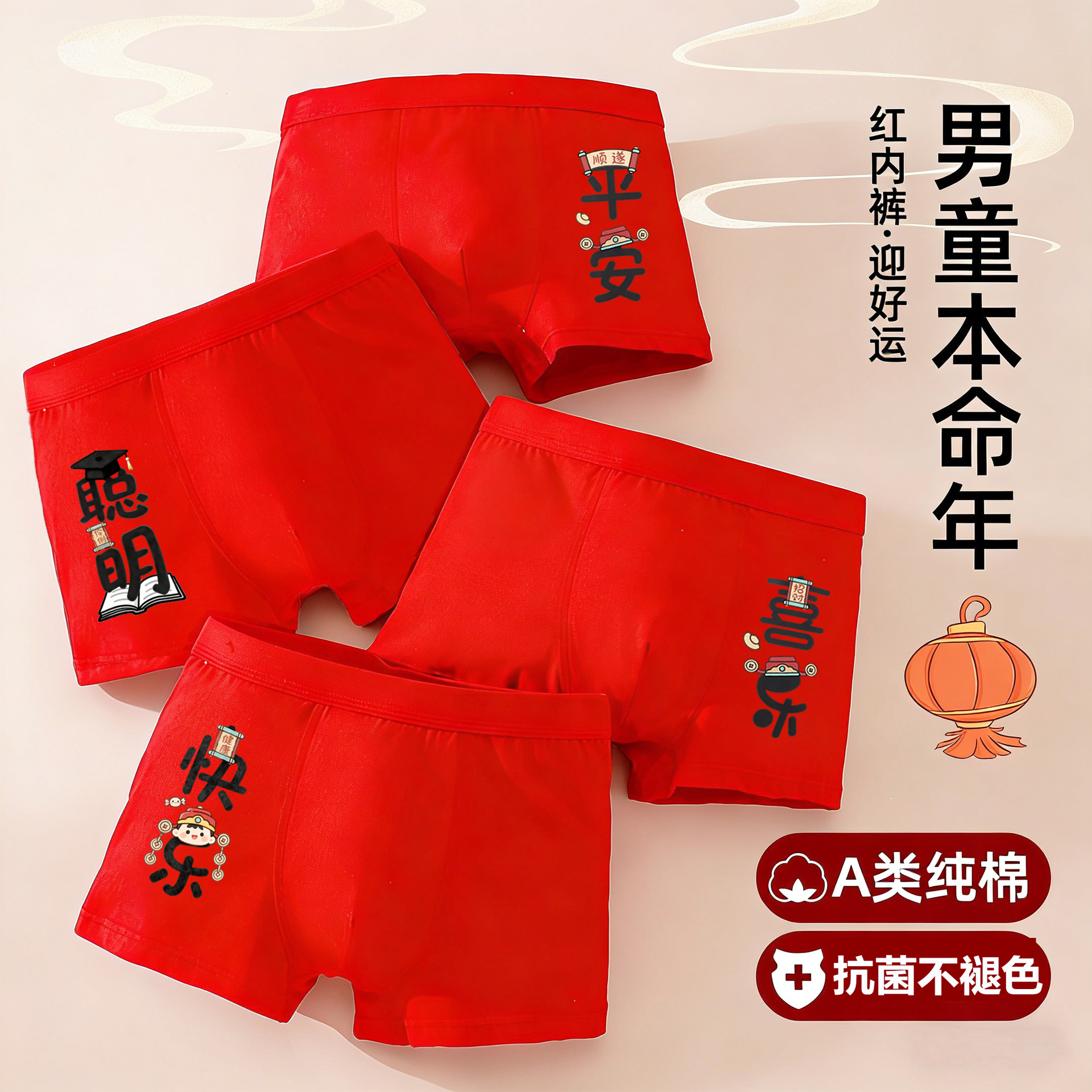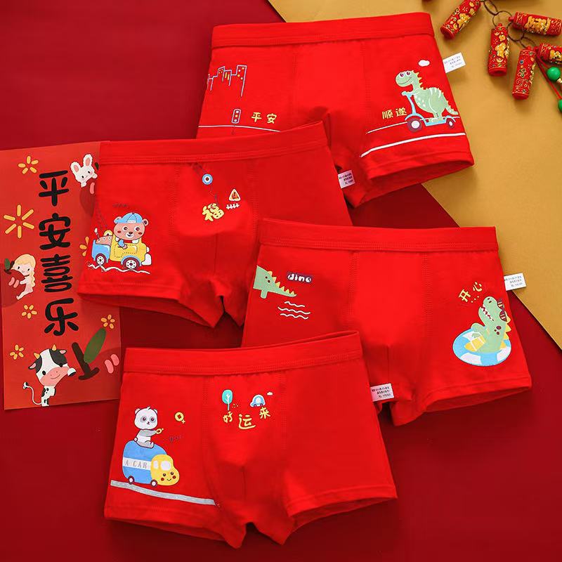 2025 Benmingnian 어린이 빨간 속옷 소녀 소년 면 반바지 큰 여자 소년 복서