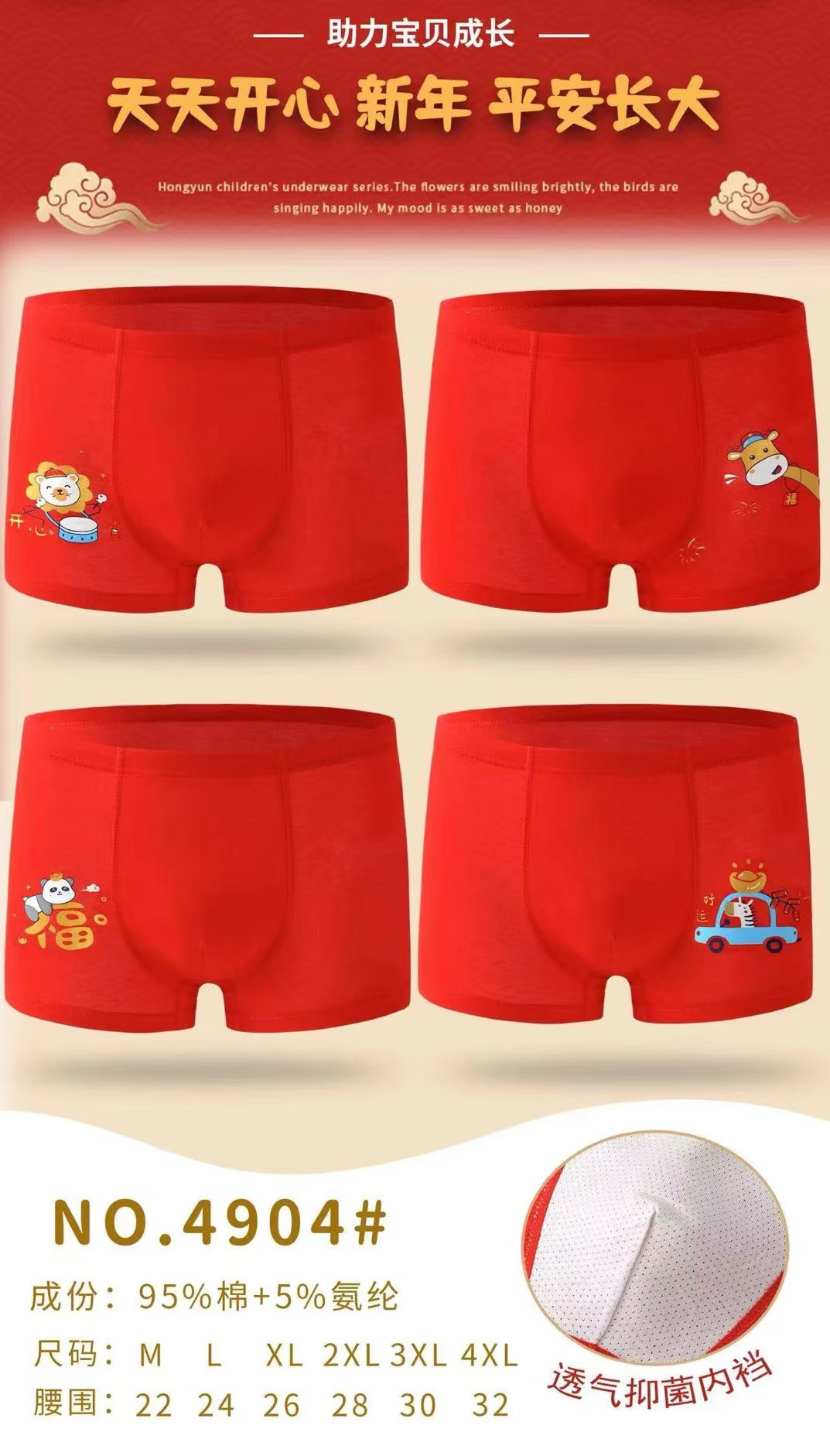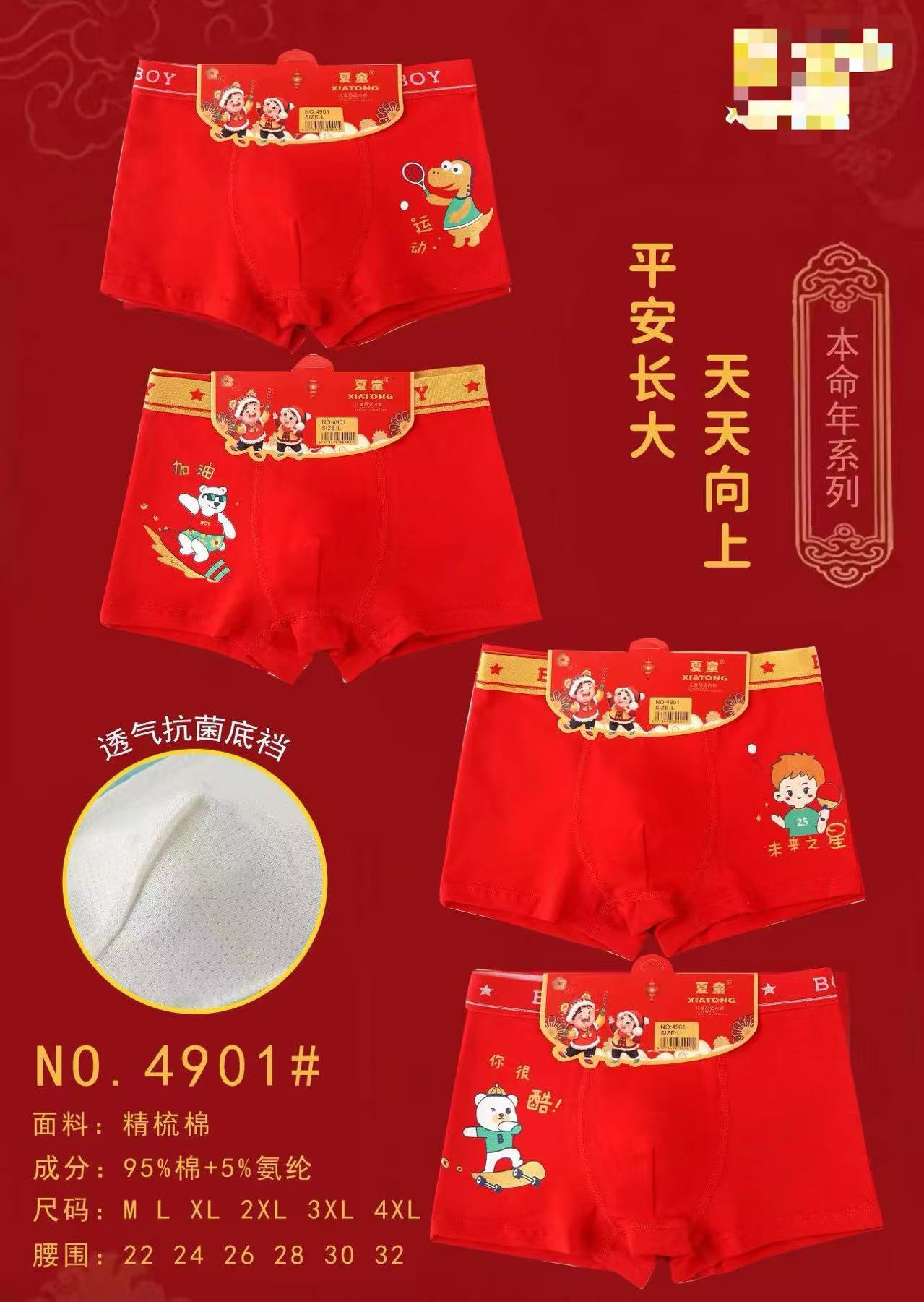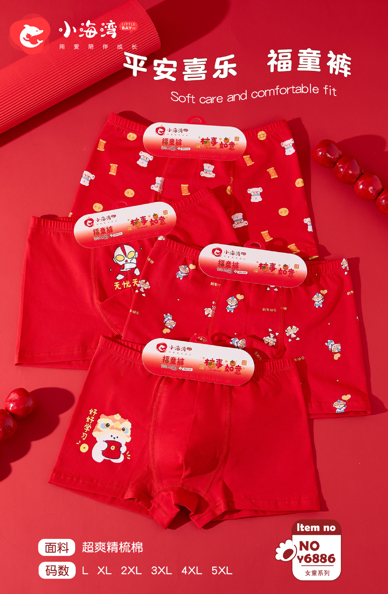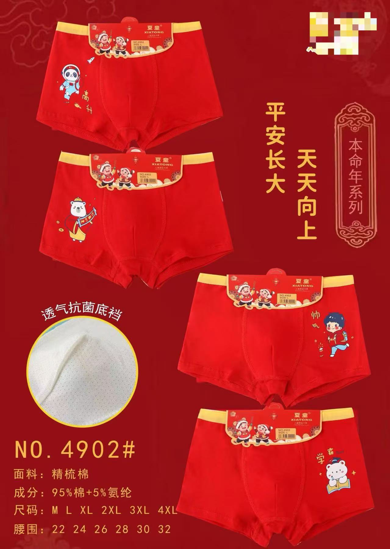 2025 Benmingnian 어린이 빨간 속옷 소녀 소년 면 반바지 큰 여자 소년 복서