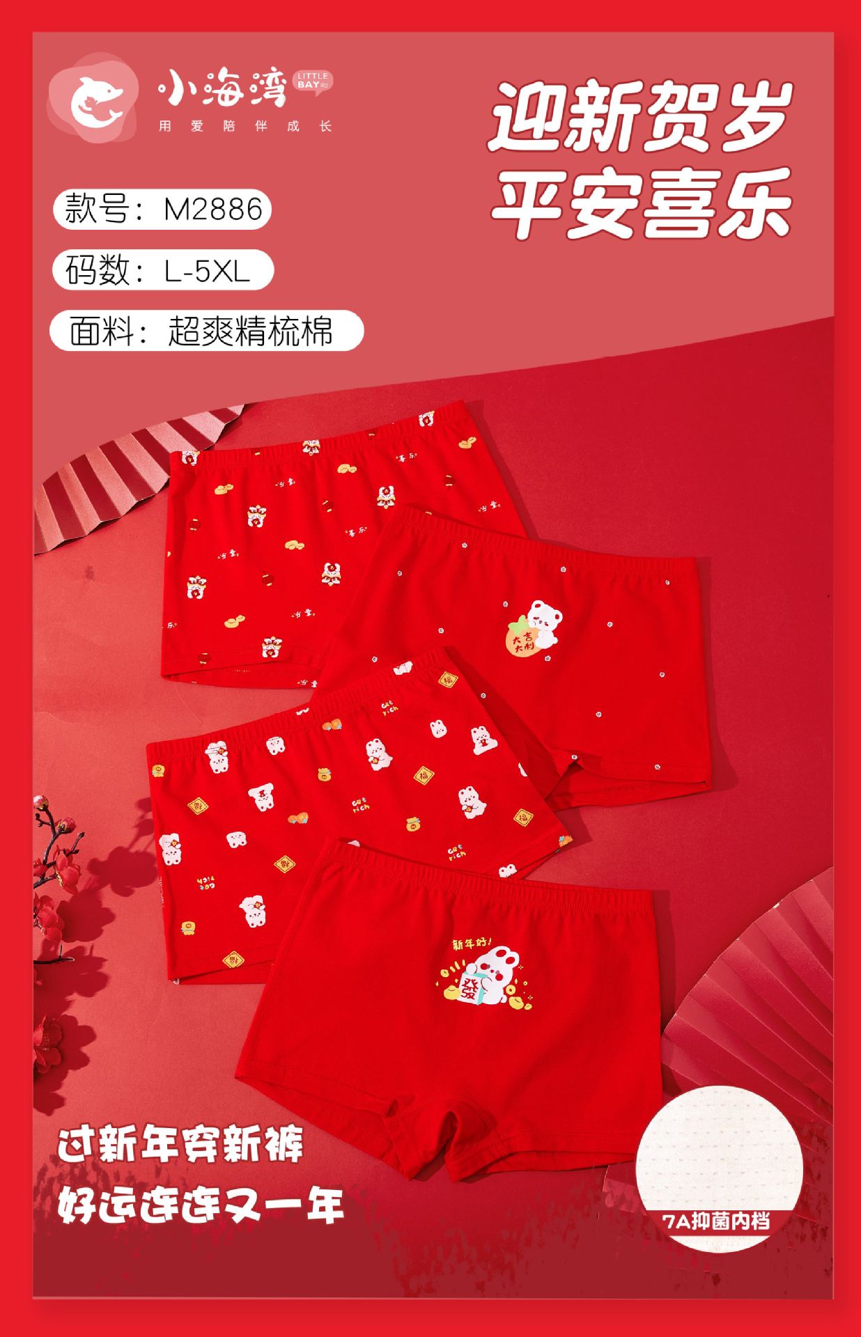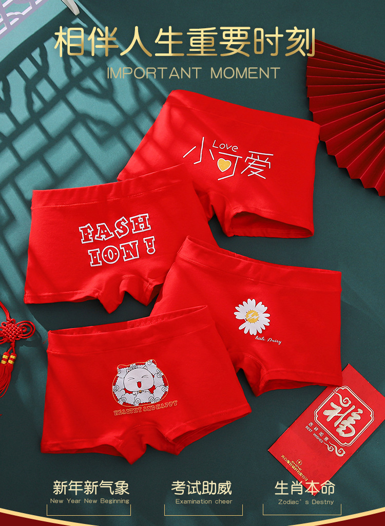 2025 Benmingnian 어린이 빨간 속옷 소녀 소년 면 반바지 큰 여자 소년 복서스토어 가기