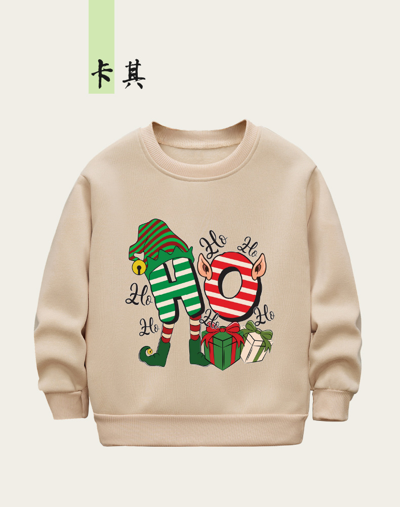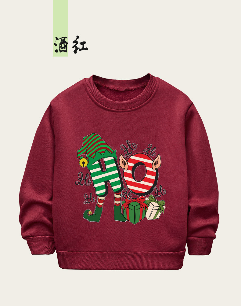 어린이 크리스마스 땀 국경 간 소년의 긴팔 기모 따뜻한 땀 크리스마스 파티 캐주얼 두꺼운 둥근 목 아동복