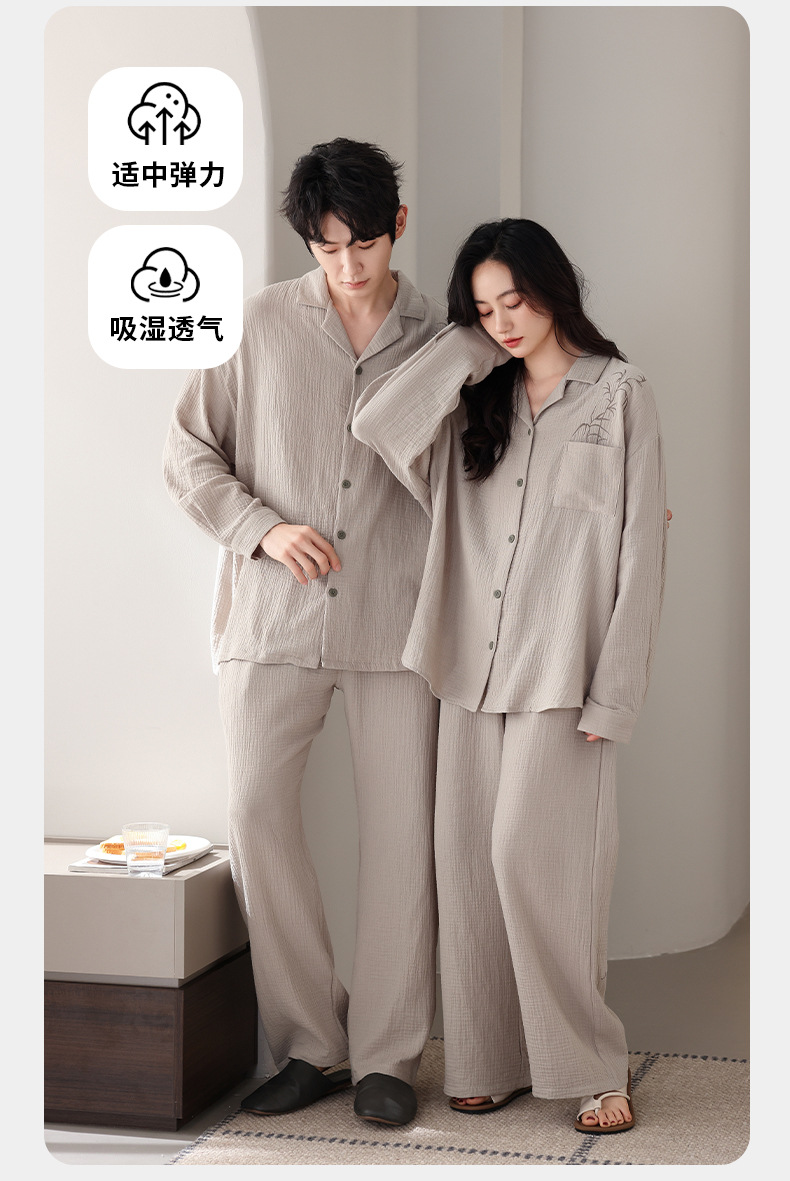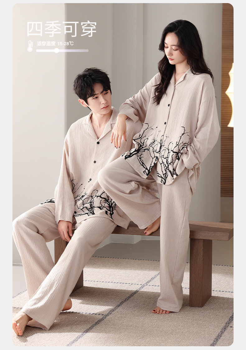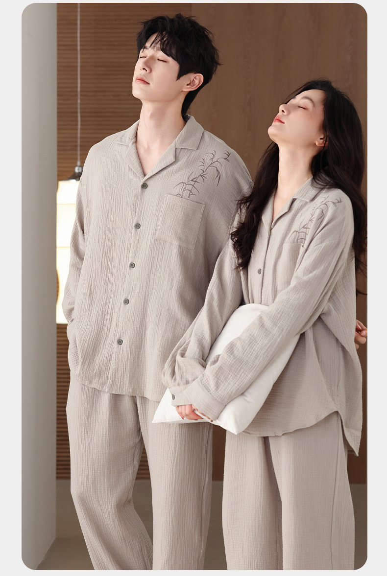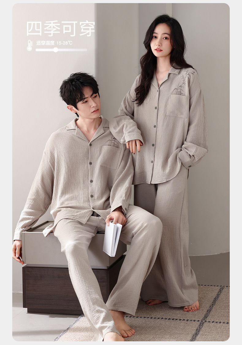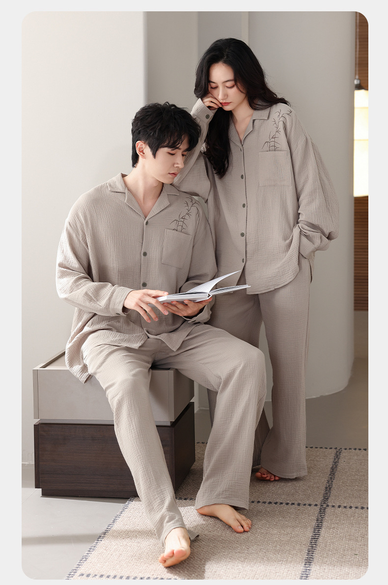 커플 잠옷 봄과 가을 짠 코튼 거즈 긴팔 홈 의류 느슨한 캐주얼 의류 남녀 세트스토어 가기