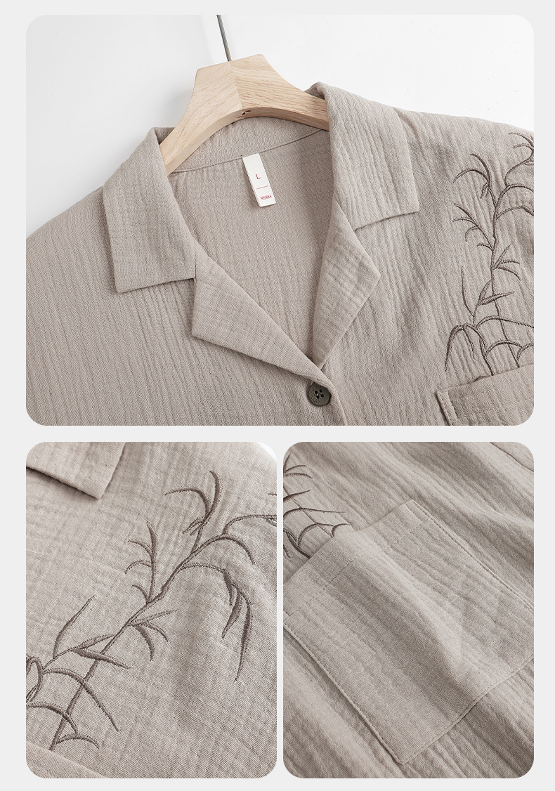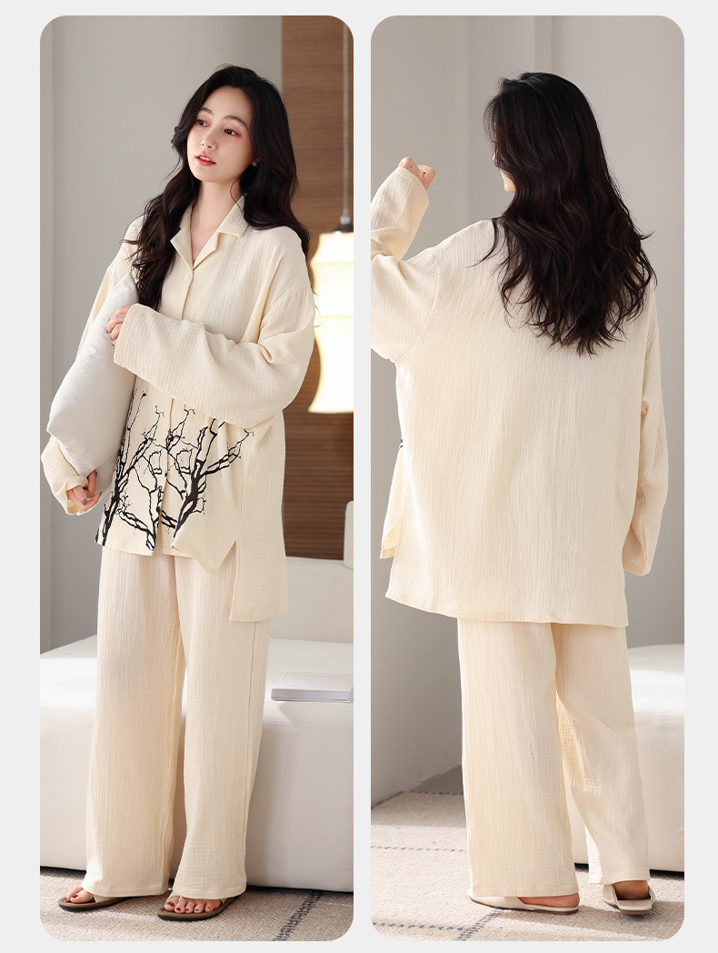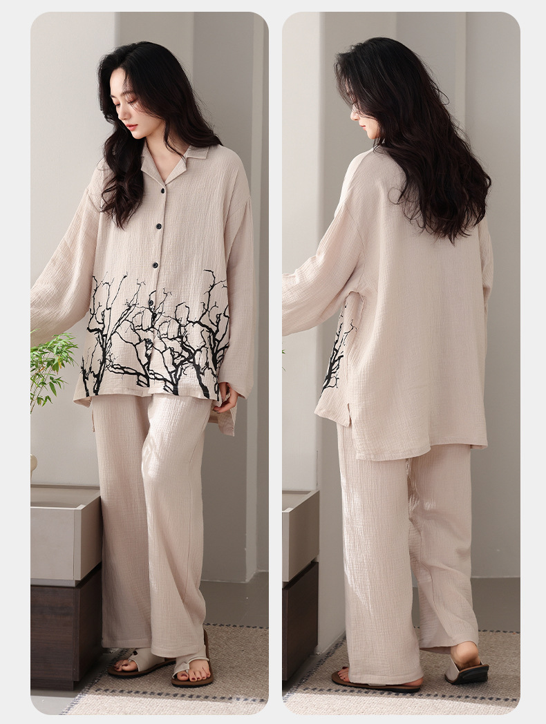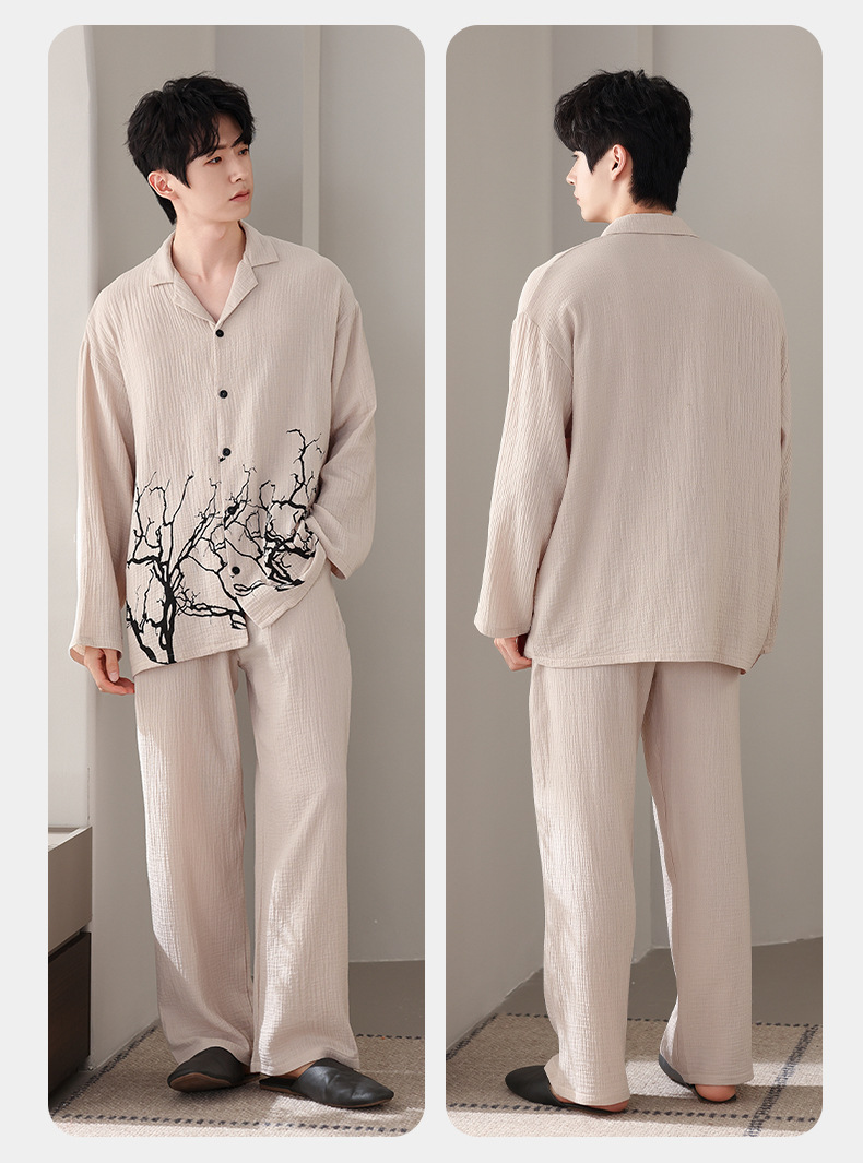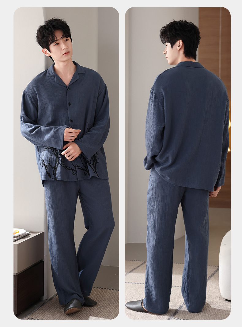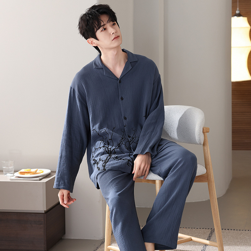 커플 잠옷 봄과 가을 짠 코튼 거즈 긴팔 홈 의류 느슨한 캐주얼 의류 남녀 세트스토어 가기