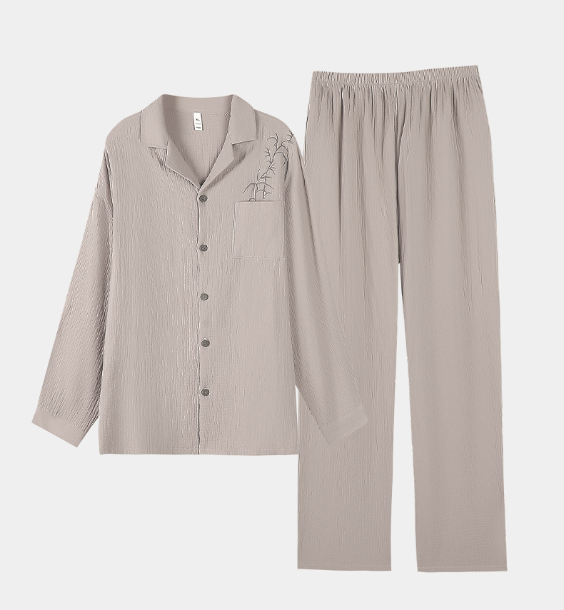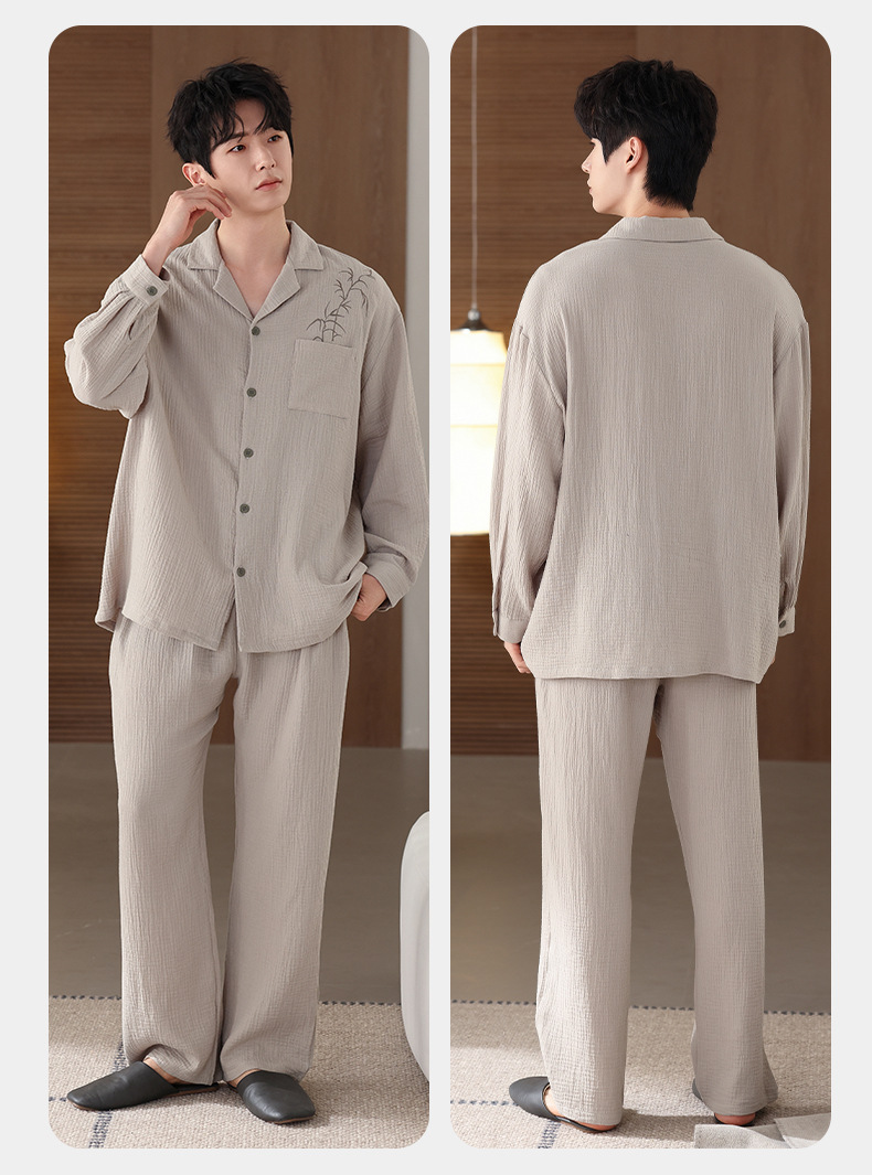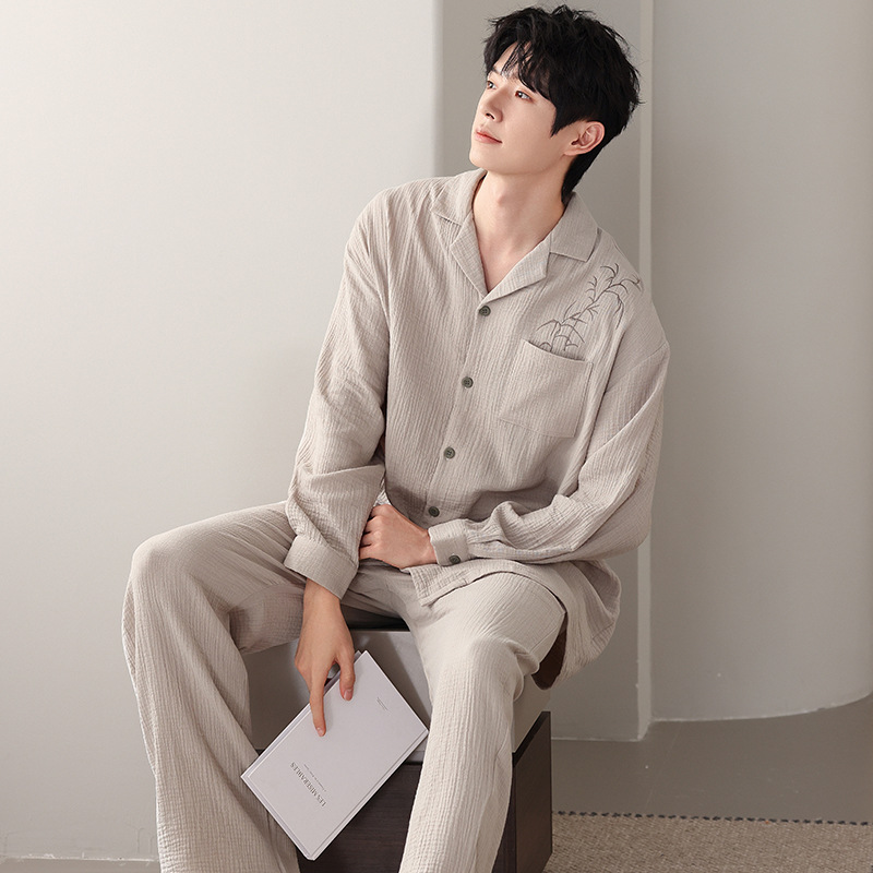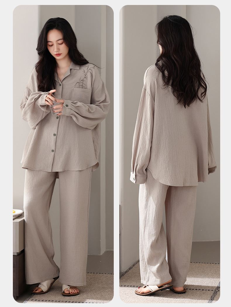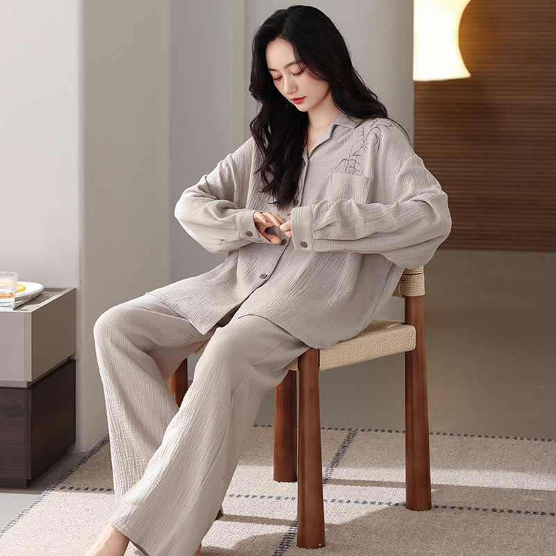커플 잠옷 봄과 가을 짠 코튼 거즈 긴팔 홈 의류 느슨한 캐주얼 의류 남녀 세트
